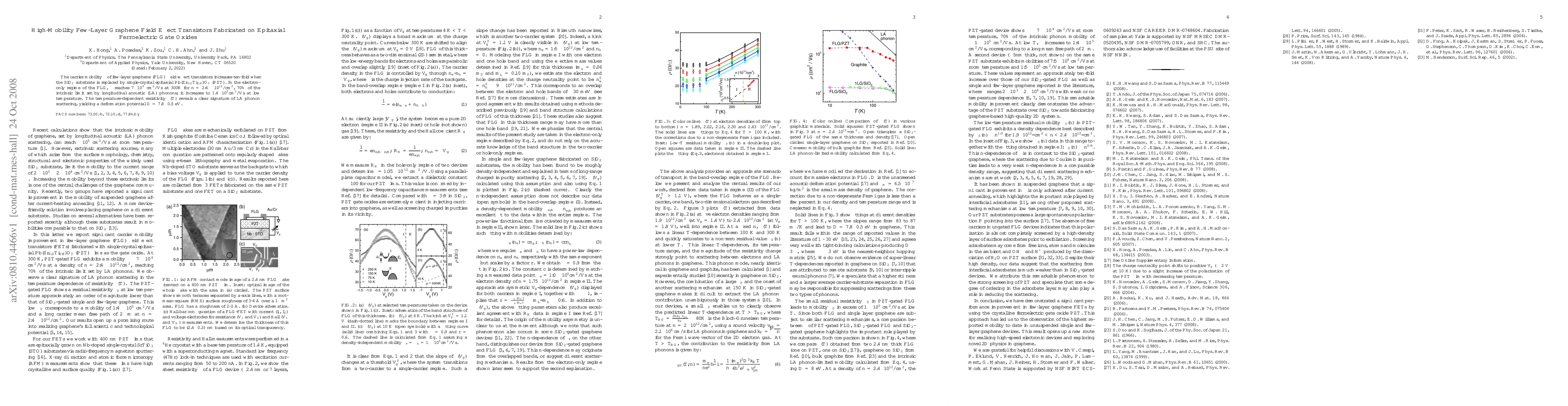 This study demonstrates that replacing SiO₂ substrates with epitaxial PZT gate oxides significantly enhances the carrier mobility of few-layer graphene FETs, reaching up to 1.4x10^5 cm²/Vs at low temperatures, approaching intrinsic limits set by LA phonon scattering.