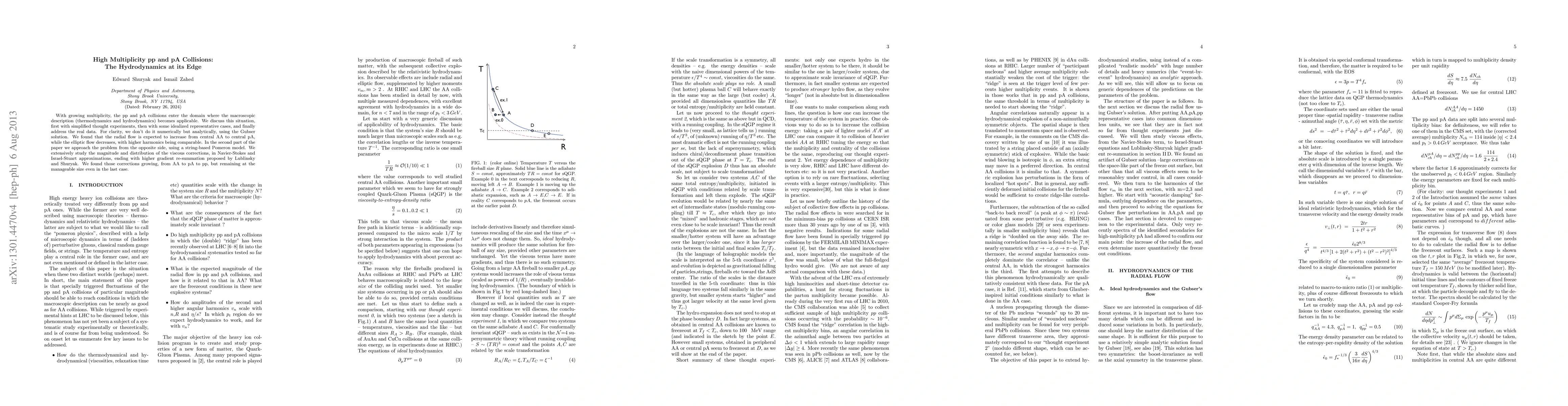 With growing multiplicity, the pp and pA collisions enter the domain where the macroscopic description (thermodynamics and hydrodynamics) becomes applicable. We discuss this situation, first with simplified thought experiments, then with some idealized representative cases, and finally address the real data. For clarity, we don't do it numerically but analytically, using the Gubser solution. We found that the radial flow is expected to increase from central AA to central pA, while the elliptic flow decreases, with higher harmonics being comparable. In the second part of the paper we approach the problem from the opposite side, using a string-based Pomeron model. We extensively study the magnitude and distribution of the viscous corrections, in Navier-Stokes and Israel-Stuart approximations, ending with higher gradient re-summation proposed by Lublinsky and Shuryak. We found those corrections growing, from AA to pA to pp, but remaining at the manageable size even in the last case.