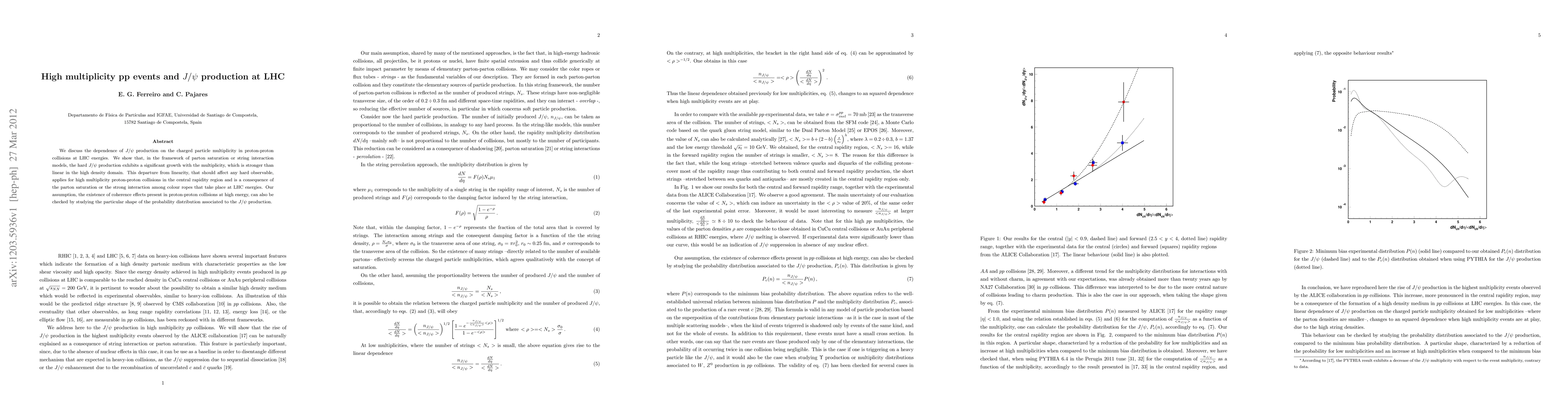 We discuss the dependence of J/\psi\ production on the charged particle multiplicity in proton-proton collisions at LHC energies. We show that, in the framework of parton saturation or string interaction models, the hard J/\psi\ production exhibits a significant growth with the multiplicity, which is stronger than linear in the high density domain. This departure from linearity, that should affect any hard observable, applies for high multiplicity proton-proton collisions in the central rapidity region and is a consequence of the parton saturation or the strong interaction among colour ropes that take place at LHC energies. Our assumption, the existence of coherence effects present in proton-proton collisions at high energy, can also be checked by studying the particular shape of the probability distribution associated to the J/\psi\ production.