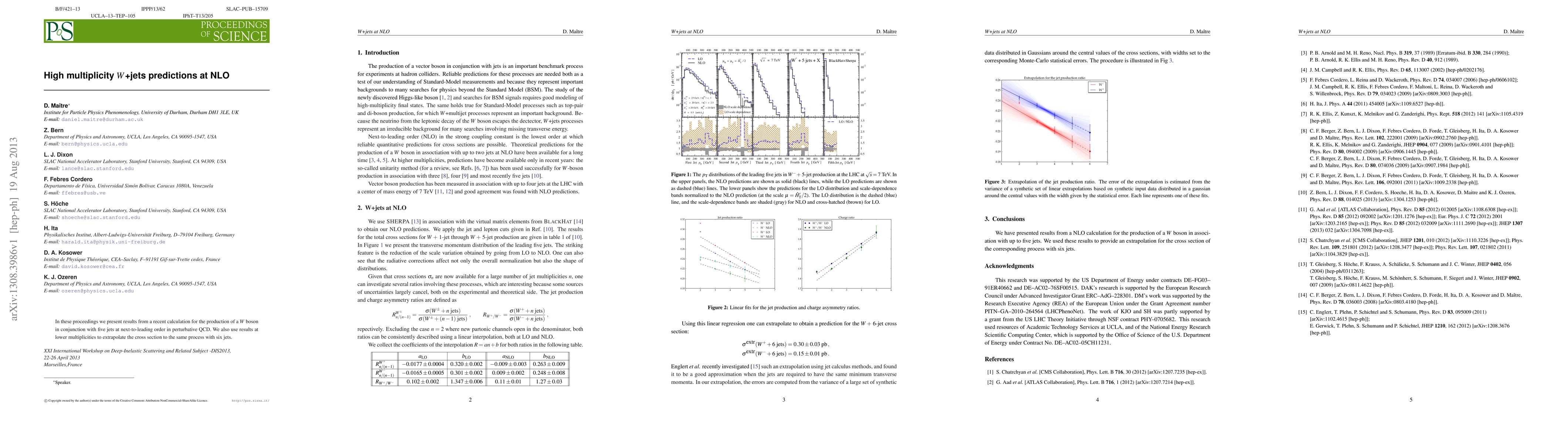 In these proceedings we present results from a recent calculation for the production of a W boson in conjunction with five jets at next-to-leading order in perturbative QCD. We also use results at lower multiplicities to extrapolate the cross section to the same process with six jets.