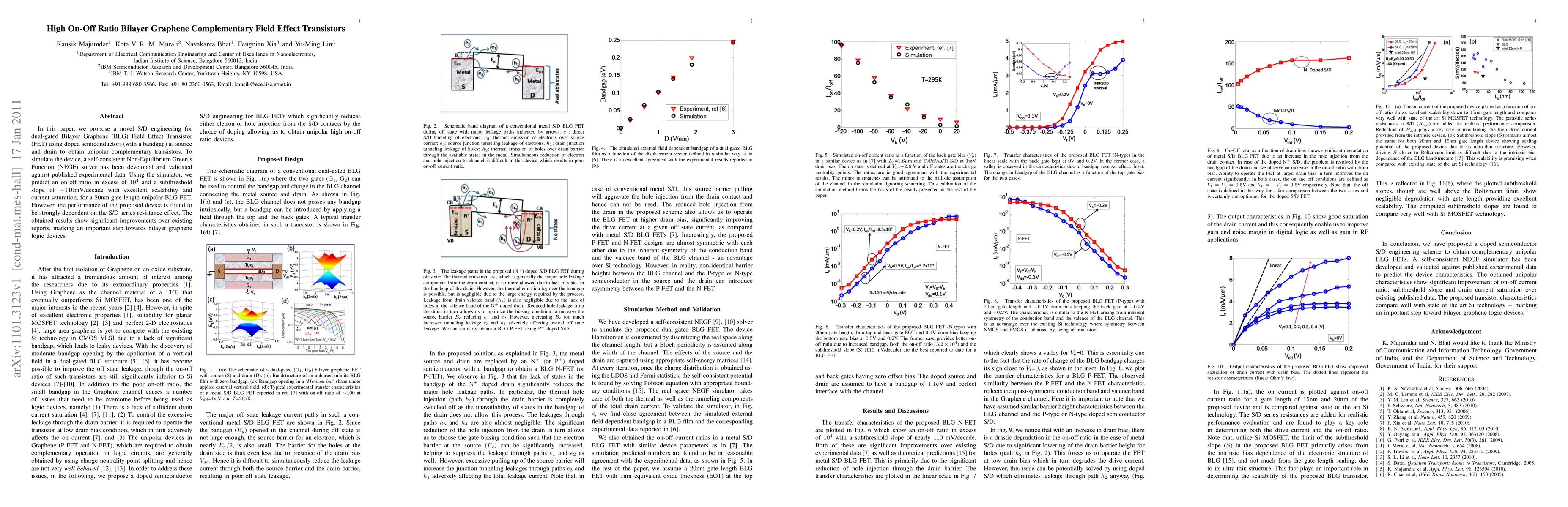 This paper proposes a novel S/D engineering for dual-gated bilayer graphene FETs using doped semiconductors to achieve unipolar complementary transistors, predicting an on-off ratio exceeding $10^4$ and a subthreshold slope of ~110mV/decade. The device performance is strongly affected by S/D series resistance, showing notable improvements over current reports.