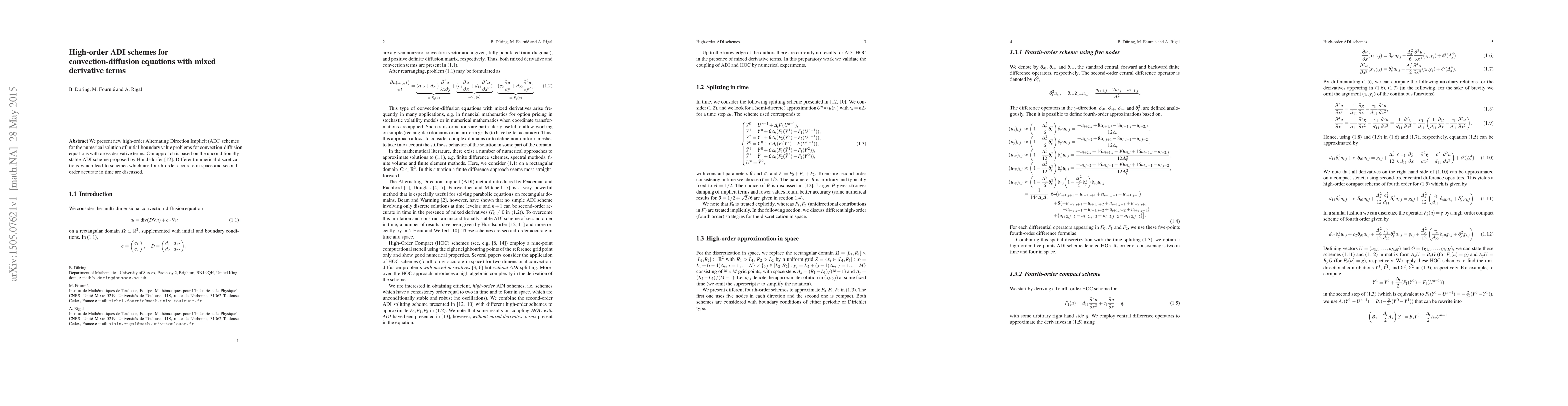 This paper introduces advanced high-order Alternating Direction Implicit (ADI) schemes for solving convection-diffusion equations with mixed derivative terms. The proposed methods are fourth-order accurate in space and second-order in time, building on the unconditionally stable ADI scheme by Hundsdorfer.
