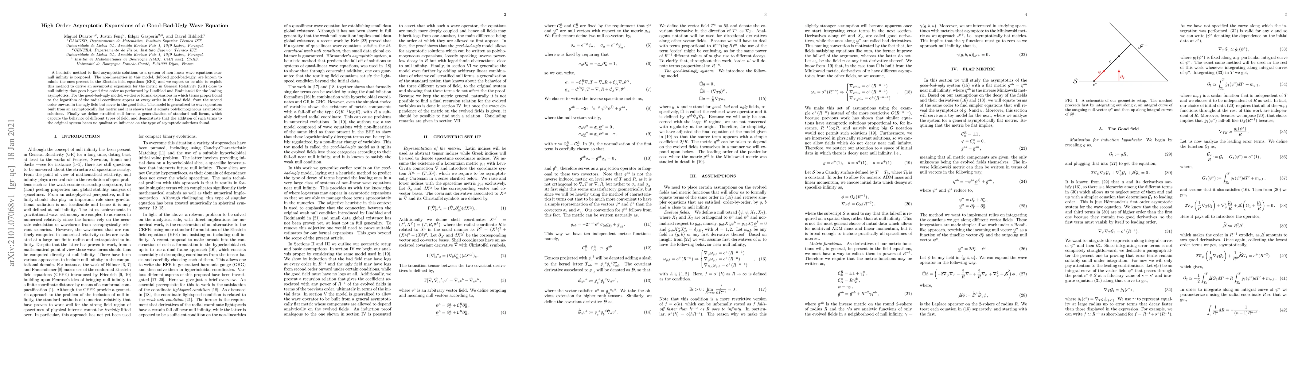 A heuristic method to find asymptotic solutions to a system of non-linear wave equations near null infinity is proposed. The non-linearities in this model, dubbed good-bad-ugly, are known to mimic the ones present in the Einstein field equations (EFE) and we expect to be able to exploit this method to derive an asymptotic expansion for the metric in General Relativity (GR) close to null infinity that goes beyond first order as performed by Lindblad and Rodnianski for the leading asymptotics. For the good-bad-ugly model, we derive formal expansions in which terms proportional to the logarithm of the radial coordinate appear at every order in the bad field, from the second order onward in the ugly field but never in the good field. The model is generalized to wave operators built from an asymptotically flat metric and it is shown that it admits polyhomogeneous asymptotic solutions. Finally we define stratified null forms, a generalization of standard null forms, which capture the behavior of different types of field, and demonstrate that the addition of such terms to the original system bears no qualitative influence on the type of asymptotic solutions found.