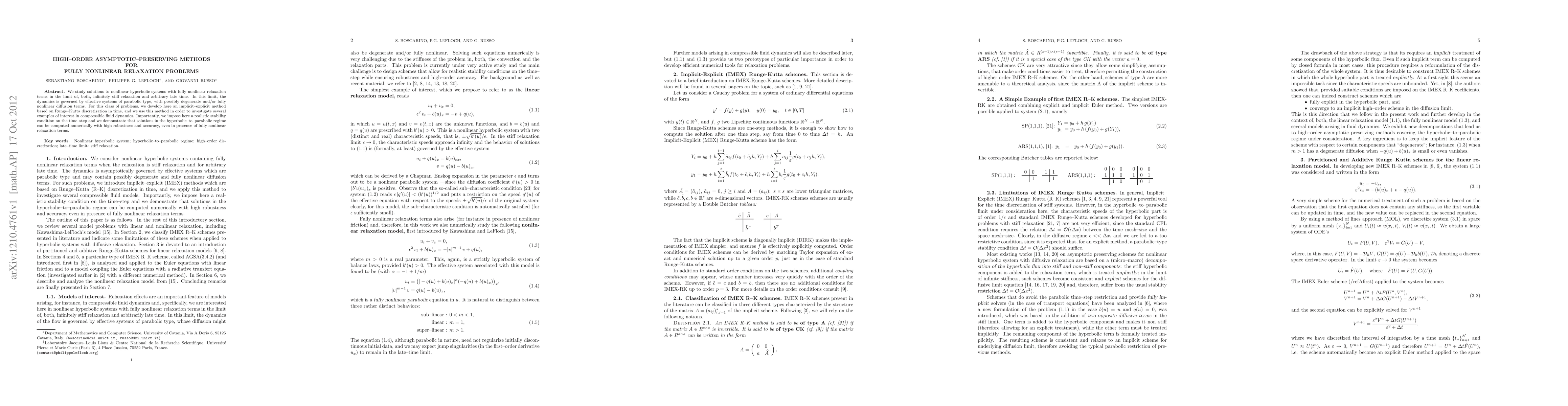 We study solutions to nonlinear hyperbolic systems with fully nonlinear relaxation terms in the limit of, both, infinitely stiff relaxation and arbitrary late time. In this limit, the dynamics is governed by effective systems of parabolic type, with possibly degenerate and/or fully nonlinear diffusion terms. For this class of problems, we develop here an implicit-explicit method based on Runge-Kutta discretization in time, and we use this method in order to investigate several examples of interest in compressible fluid dynamics. Importantly, we impose here a realistic stability condition on the time-step and we demonstrate that solutions in the hyperbolic-to-parabolic regime can be computed numerically with high robustness and accuracy, even in presence of fully nonlinear relaxation terms.
