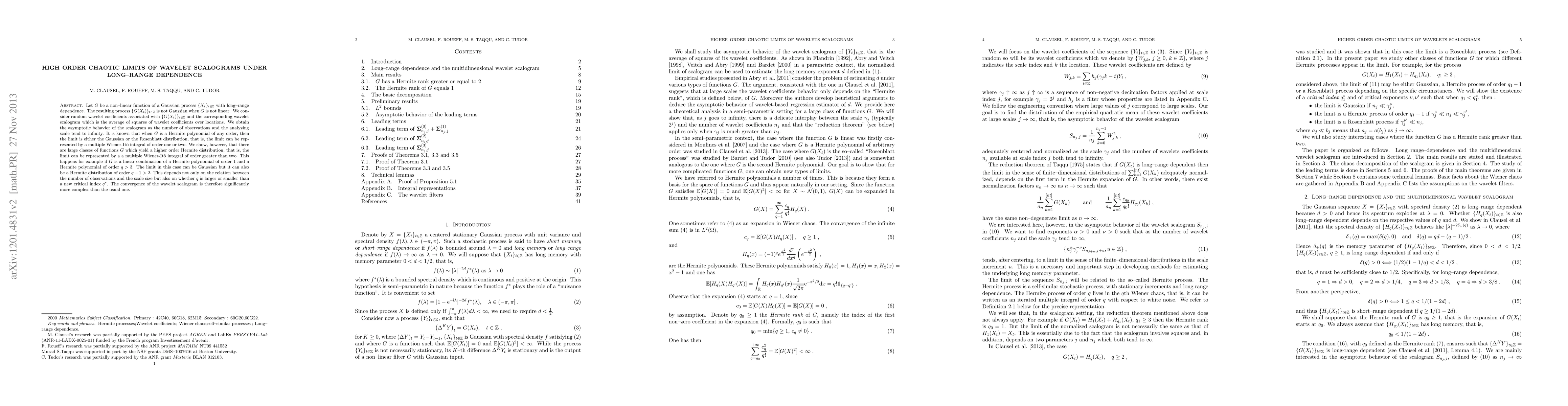 Let $G$ be a non--linear function of a Gaussian process $\{X_t\}_{t\in\mathbb{Z}}$ with long--range dependence. The resulting process $\{G(X_t)\}_{t\in\mathbb{Z}}$ is not Gaussian when $G$ is not linear. We consider random wavelet coefficients associated with $\{G(X_t)\}_{t\in\mathbb{Z}}$ and the corresponding wavelet scalogram which is the average of squares of wavelet coefficients over locations. We obtain the asymptotic behavior of the scalogram as the number of observations and scales tend to infinity. It is known that when $G$ is a Hermite polynomial of any order, then the limit is either the Gaussian or the Rosenblatt distribution, that is, the limit can be represented by a multiple Wiener-It\^o integral of order one or two. We show, however, that there are large classes of functions $G$ which yield a higher order Hermite distribution, that is, the limit can be represented by a a multiple Wiener-It\^o integral of order greater than two.
