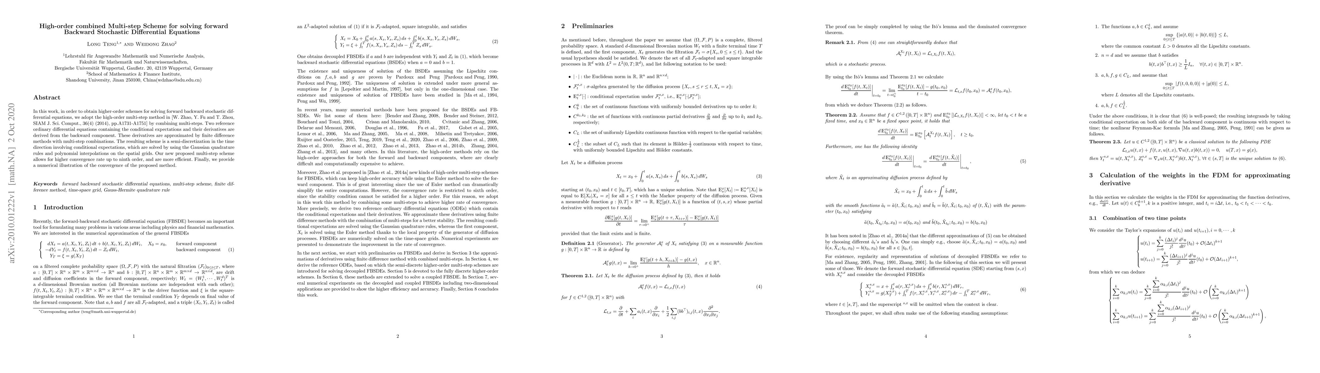 This paper proposes a high-order combined multi-step scheme for solving forward backward stochastic differential equations, achieving convergence rates up to ninth order through semi-discretization and Gaussian quadrature rules. The method is shown to be more efficient compared to existing methods.