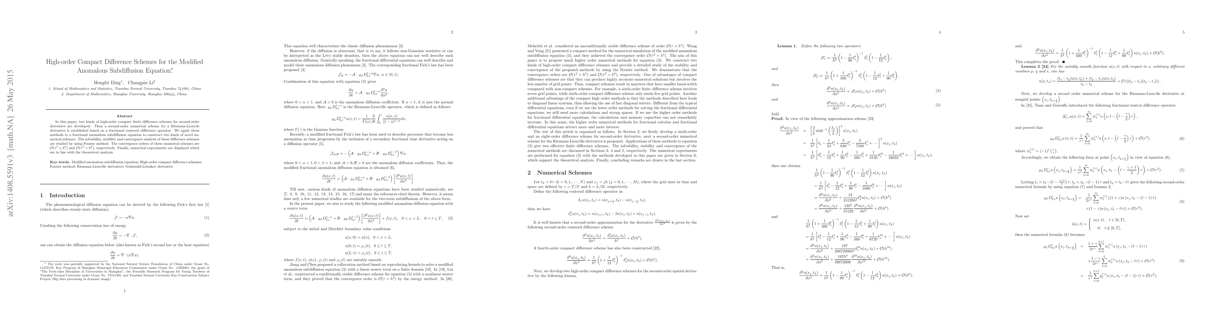 Researchers develop high-order compact difference schemes for numerically solving the fractional anomalous subdiffusion equation, achieving convergence orders of O(τ^2+h^6) and O(τ^2+h^8), offering improved accuracy in modeling complex diffusion phenomena.