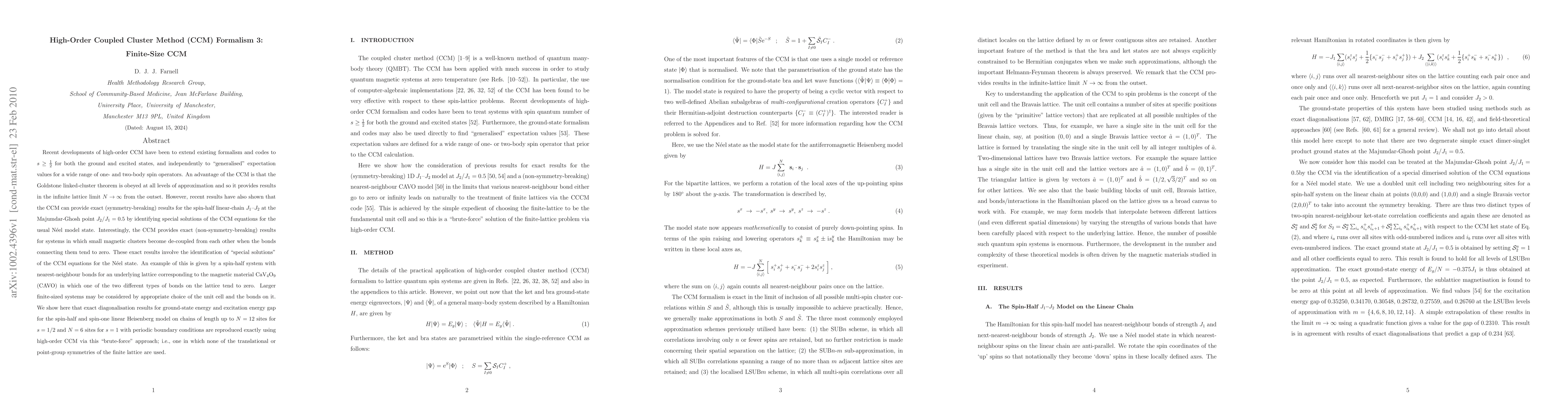 This research paper demonstrates the application of a high-order Coupled Cluster Method (CCM) to finite-sized systems, achieving exact results for ground-state energy and excitation energy gap in linear Heisenberg models, showcasing its potential for solving complex magnetic systems.