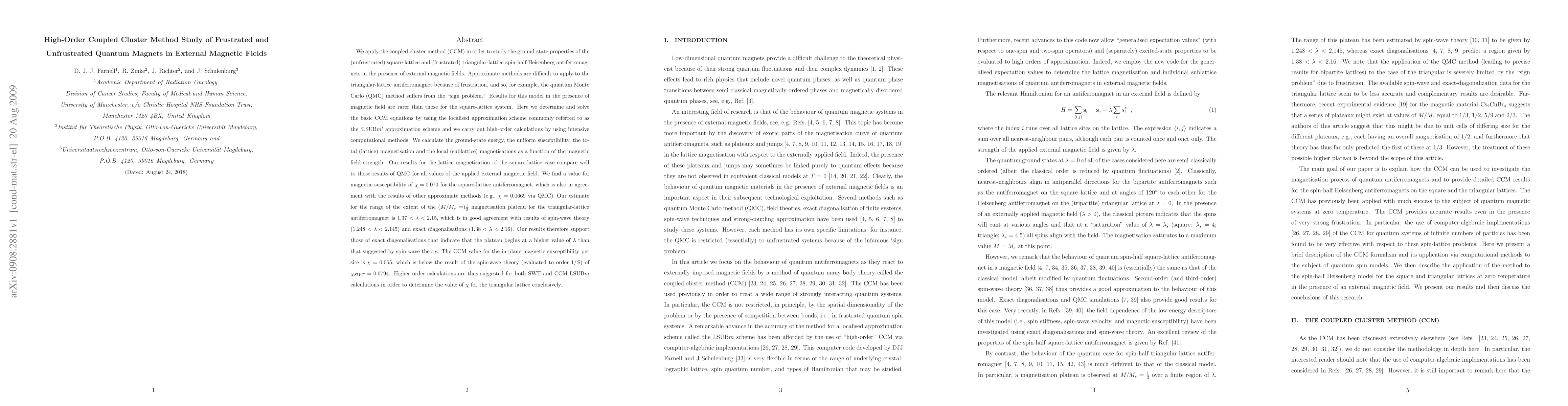 This study employs the high-order coupled cluster method to investigate the ground-state properties of square-lattice and triangular-lattice spin-half Heisenberg antiferromagnets under external magnetic fields, finding good agreement with other methods for magnetisation and susceptibility values.