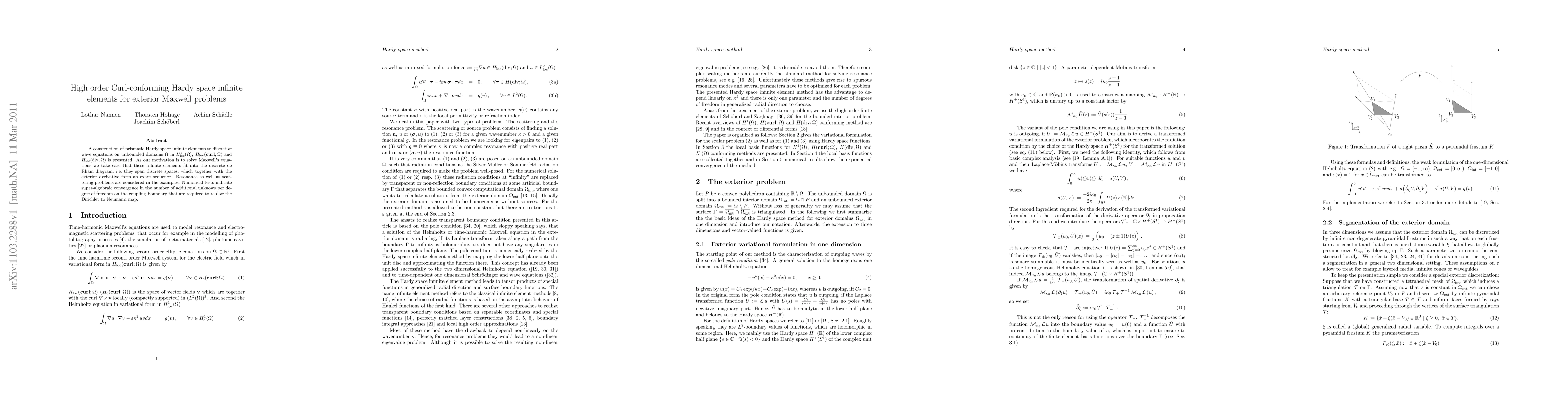 This paper introduces prismatic Hardy space infinite elements for discretizing Maxwell's equations in unbounded domains, ensuring they fit into the discrete de Rham diagram. Numerical tests show super-algebraic convergence in the number of additional unknowns needed for the Dirichlet to Neumann map.