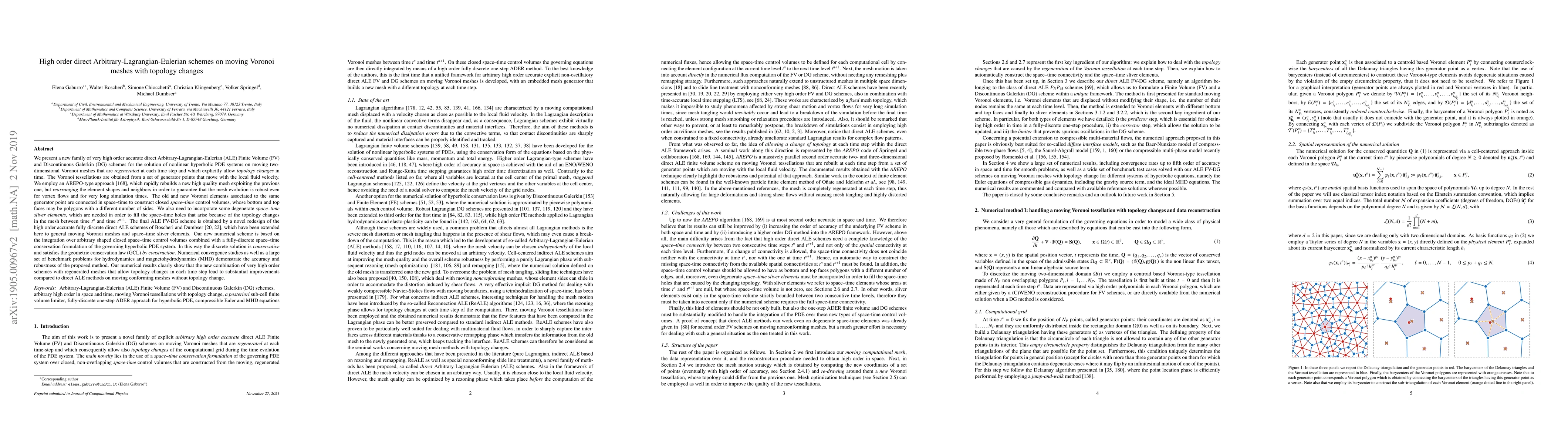 This paper introduces high-order ALE Finite Volume and Discontinuous Galerkin schemes for solving nonlinear hyperbolic PDEs on dynamically evolving 2D Voronoi meshes that allow for topology changes. The method employs a mesh regeneration technique to maintain robustness over long simulations, ensuring conservation and accuracy.