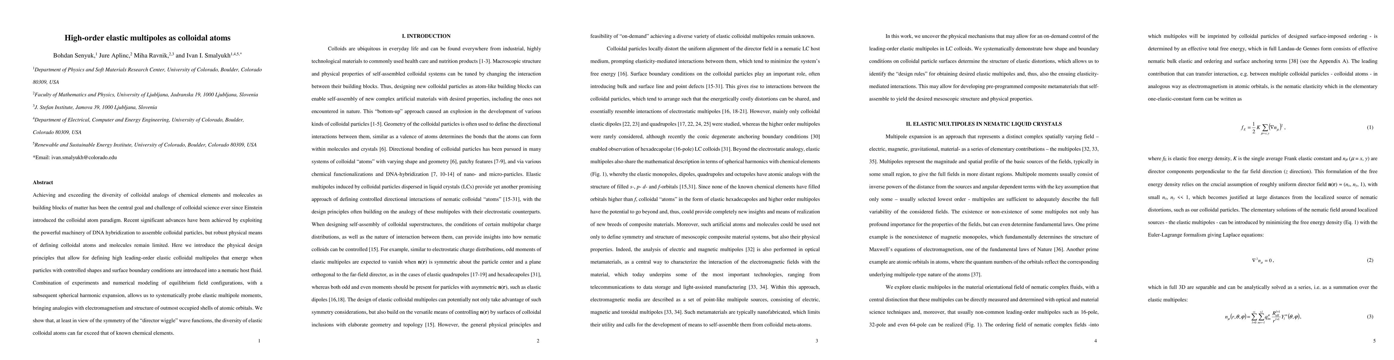 Researchers introduce a new method to create high-order elastic colloidal multipoles, which can mimic the diversity of chemical elements and molecules, potentially exceeding known analogs.