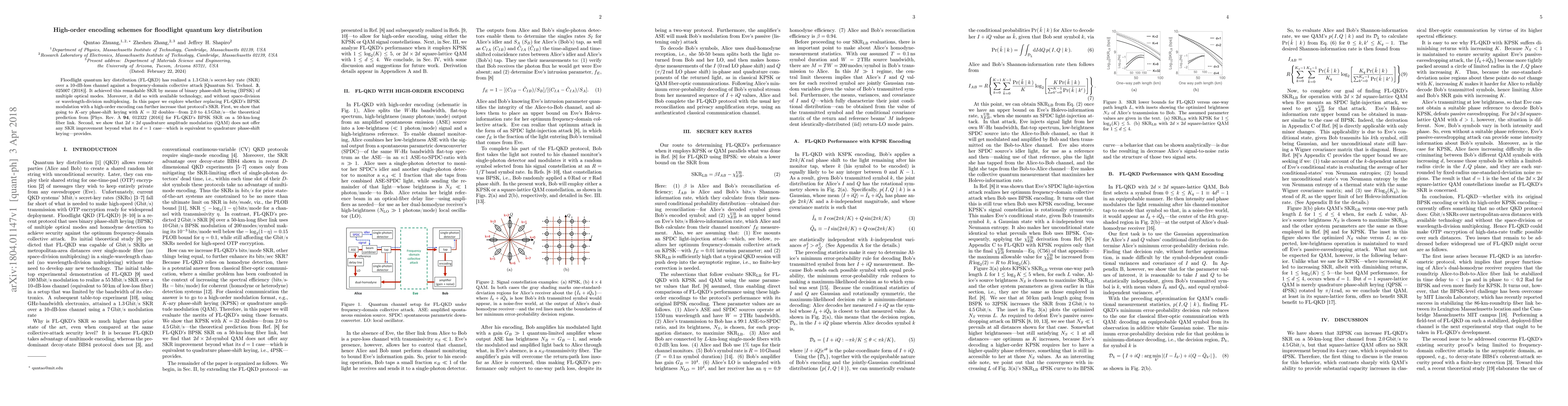Floodlight quantum key distribution (FL-QKD) has realized a 1.3\,Gbit/s secret-key rate (SKR) over a 10-dB-loss channel against a frequency-domain collective attack [Quantum~Sci.~Technol. {\bf 3}, 025007 (2018)]. It achieved this remarkable SKR by means of binary phase-shift keying (BPSK) of multiple optical modes. Moreover, it did so with available technology, and without space-division or wavelength-division multiplexing. In this paper we explore whether replacing FL-QKD's BPSK modulation with a high-order encoding can further increase that protocol's SKR. First, we show that going to $K$-ary phase-shift keying with $K = 32$ doubles---from 2.0 to 4.5\,Gbit/s---the theoretical prediction from [Phys.~Rev.~A {\bf 94}, 012322 (2016)] for FL-QKD's BPSK SKR on a 50-km-long fiber link. Second, we show that $2d\times 2d$ quadrature amplitude modulation (QAM) does not offer any SKR improvement beyond what its $d=1$ case---which is equivalent to quadrature phase-shift keying---provides.
