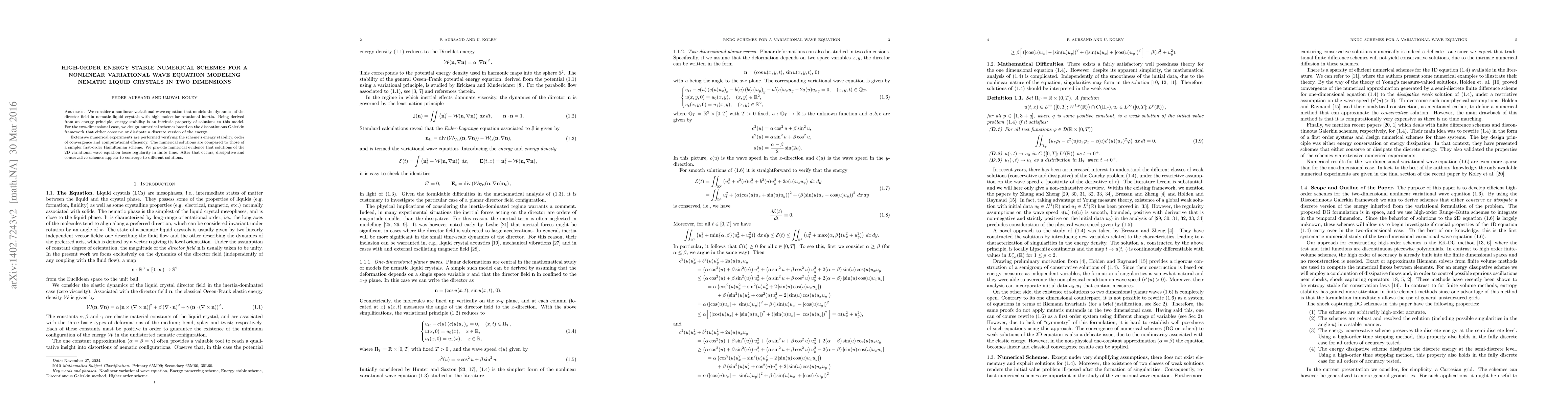 Researchers developed numerical schemes to model nematic liquid crystals using a nonlinear variational wave equation, finding that solutions lose regularity over time and dissolving conservative and dissipative schemes converge to different solutions.