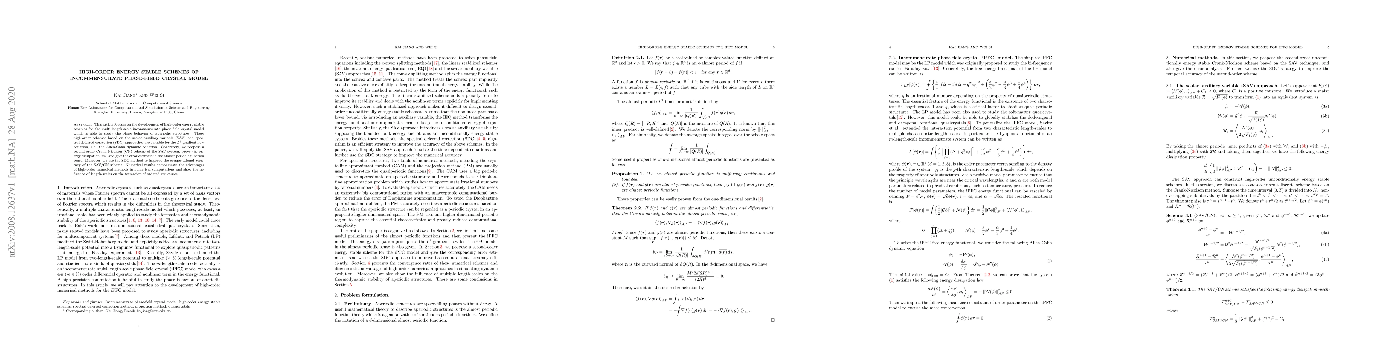 Researchers develop high-order energy stable schemes for studying aperiodic structures in phase-field crystal models, improving computational accuracy and demonstrating the influence of length-scales on ordered structure formation.