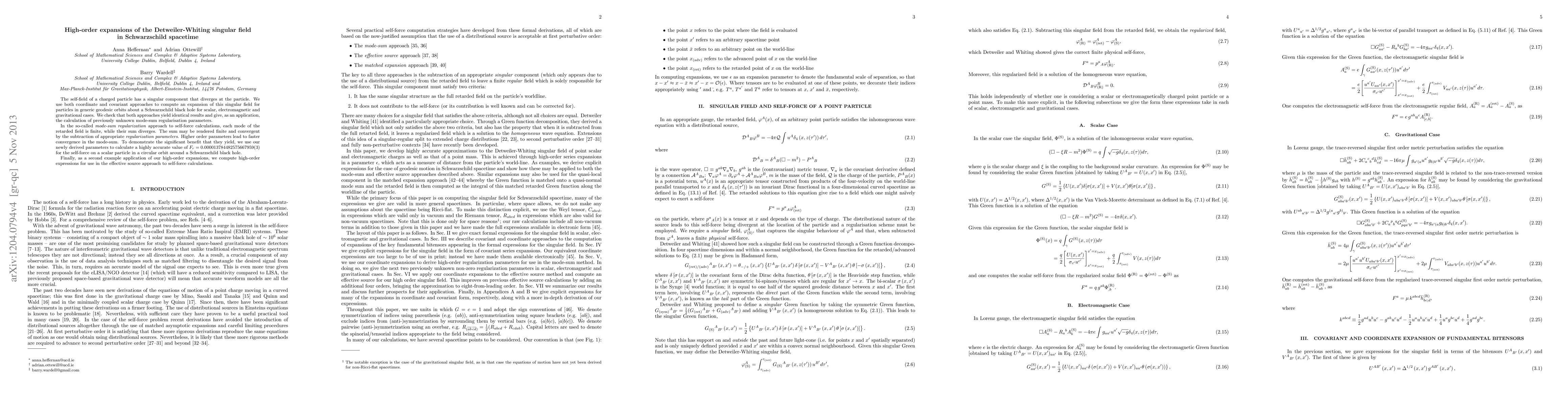 This paper computes high-order expansions of the Detweiler-Whiting singular field in Schwarzschild spacetime for charged particles, comparing two approaches and applying a new method to regularize the field.