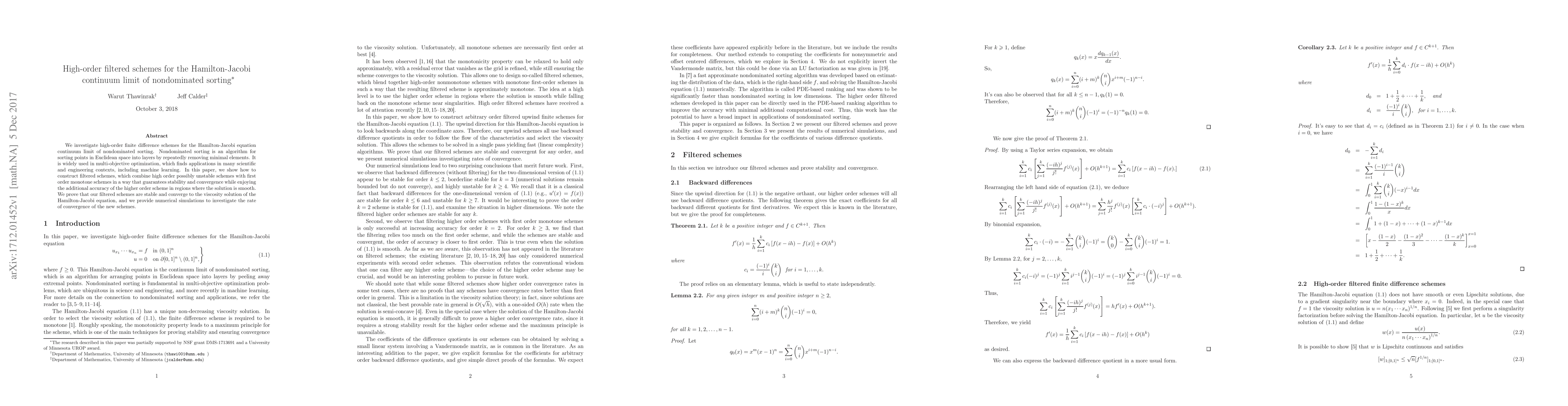 We investigate high-order finite difference schemes for the Hamilton-Jacobi equation continuum limit of nondominated sorting. Nondominated sorting is an algorithm for sorting points in Euclidean space into layers by repeatedly removing minimal elements. It is widely used in multi-objective optimization, which finds applications in many scientific and engineering contexts, including machine learning. In this paper, we show how to construct filtered schemes, which combine high order possibly unstable schemes with first order monotone schemes in a way that guarantees stability and convergence while enjoying the additional accuracy of the higher order scheme in regions where the solution is smooth. We prove that our filtered schemes are stable and converge to the viscosity solution of the Hamilton-Jacobi equation, and we provide numerical simulations to investigate the rate of convergence of the new schemes.