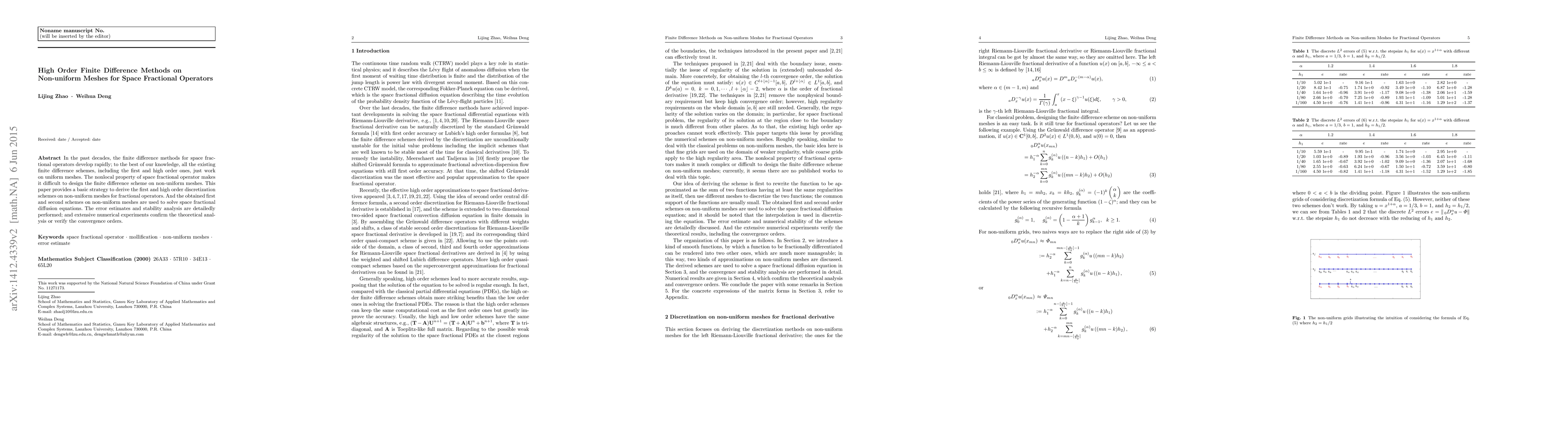 This paper develops high-order finite difference methods for space fractional operators on non-uniform meshes, addressing the challenge posed by the nonlocal property of these operators. The proposed schemes are validated through error estimates, stability analysis, and numerical experiments confirming the theoretical convergence orders.