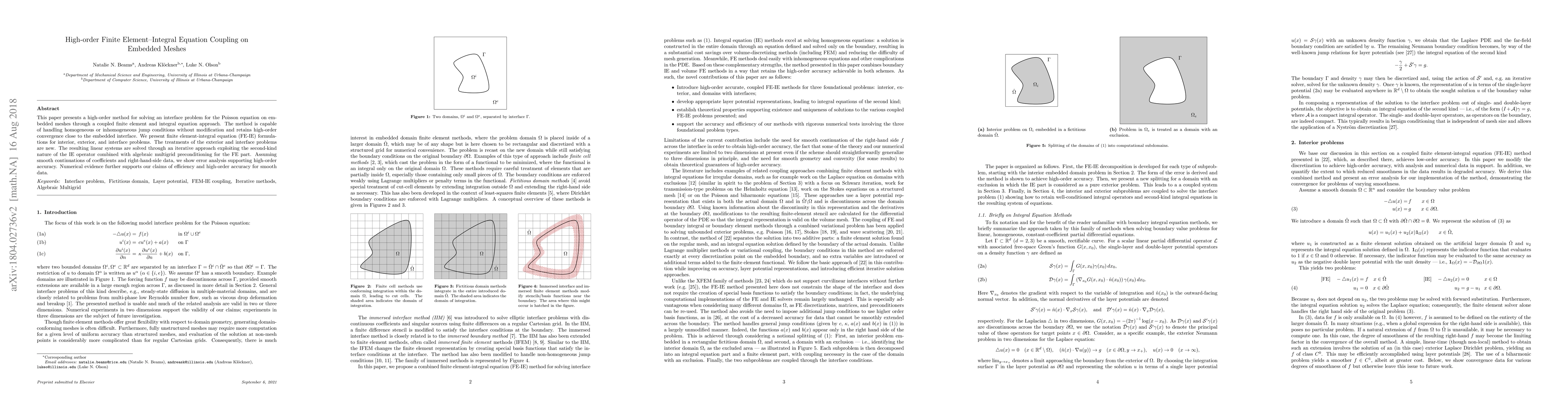 Researchers develop a high-order method to solve interface problems in Poisson equation on embedded meshes using coupled finite element and integral equation approaches, achieving high accuracy and efficiency.
