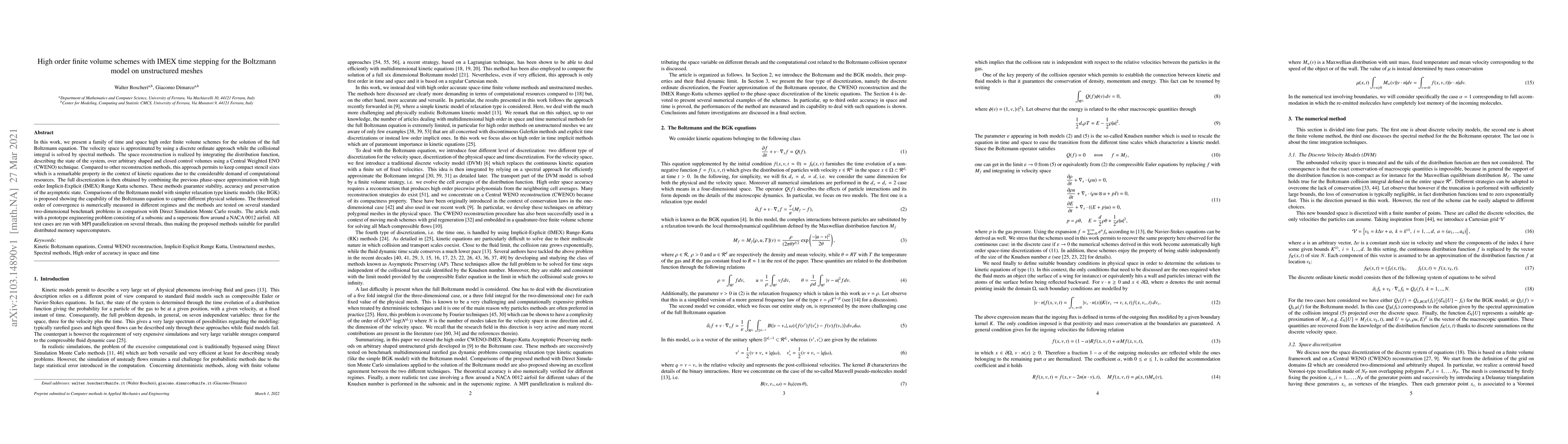 Researchers developed high-order finite volume schemes with implicit-explicit (IMEX) time stepping for solving the Boltzmann equation on unstructured meshes, showcasing improved stability, accuracy, and computational efficiency.