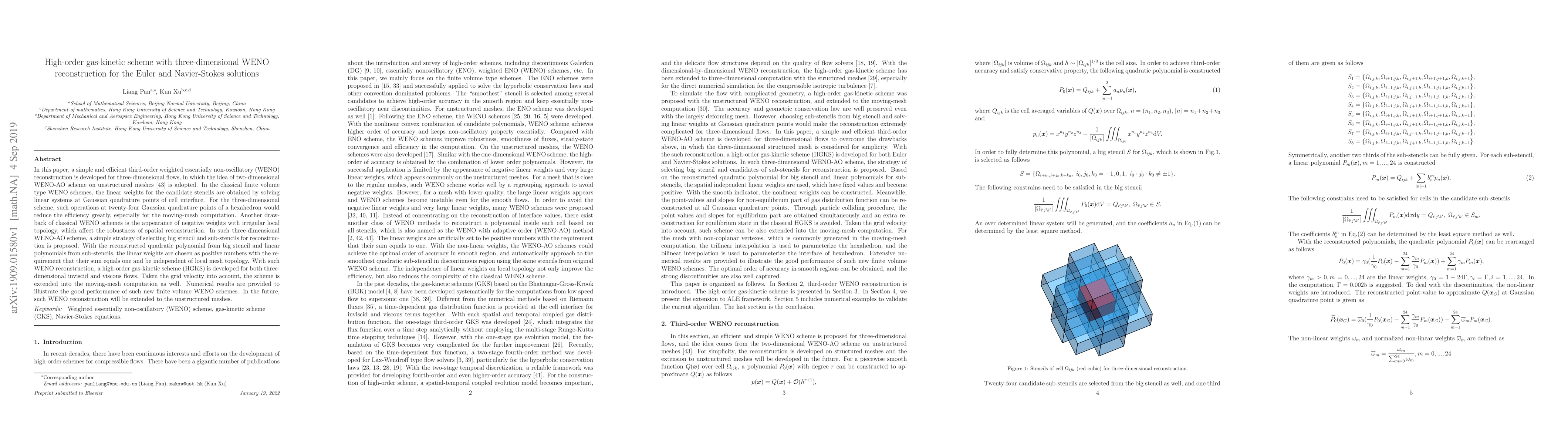 This paper develops a third-order WENO reconstruction for three-dimensional flows, addressing efficiency issues and negative weight problems in classical schemes. The proposed method uses a combination of big stencil and sub-stencils to ensure positive weights, enabling a high-order gas-kinetic scheme for both Euler and Navier-Stokes equations, including moving-mesh computations.