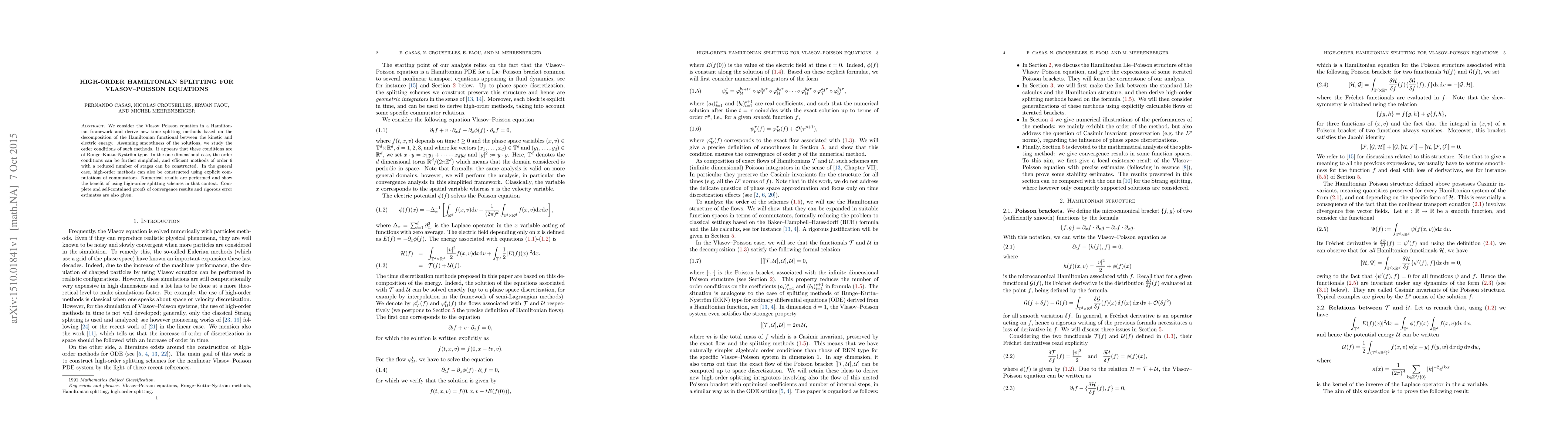 Researchers developed new time splitting methods for solving Vlasov-Poisson equations, achieving high-order accuracy with fewer stages in one-dimensional cases and explicit computations in general cases.