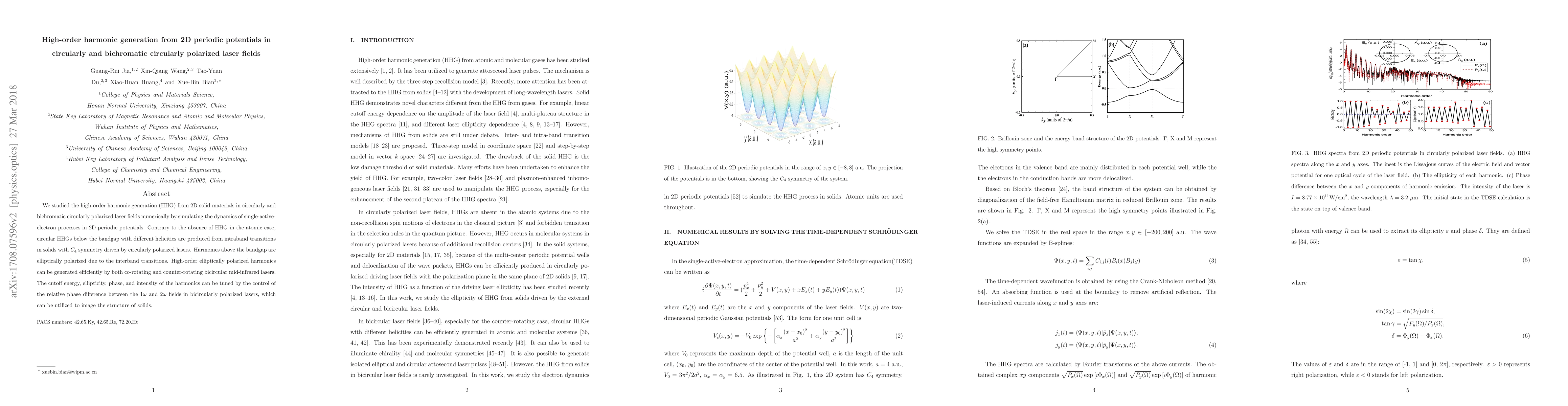 This research numerically investigates high-order harmonic generation in 2D solid materials subjected to circularly and bichromatic circularly polarized laser fields, demonstrating the production of circular HHG below the bandgap and elliptically polarized harmonics above it, with tunable properties controlled by the relative phase of the laser fields. The study highlights the potential for imaging solid structures using these tunable harmonics.