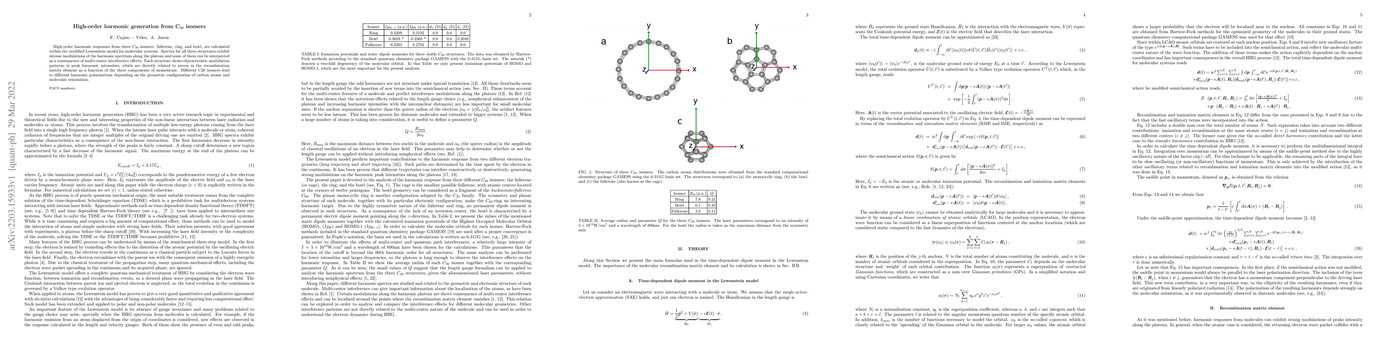This study uses the modified Lewenstein model to calculate high-order harmonic generation from three $C_{20}$ isomers: fullerene, ring, and bowl. Each structure shows unique modulation patterns in harmonic spectra linked to multi-center interference and specific molecular orientations.