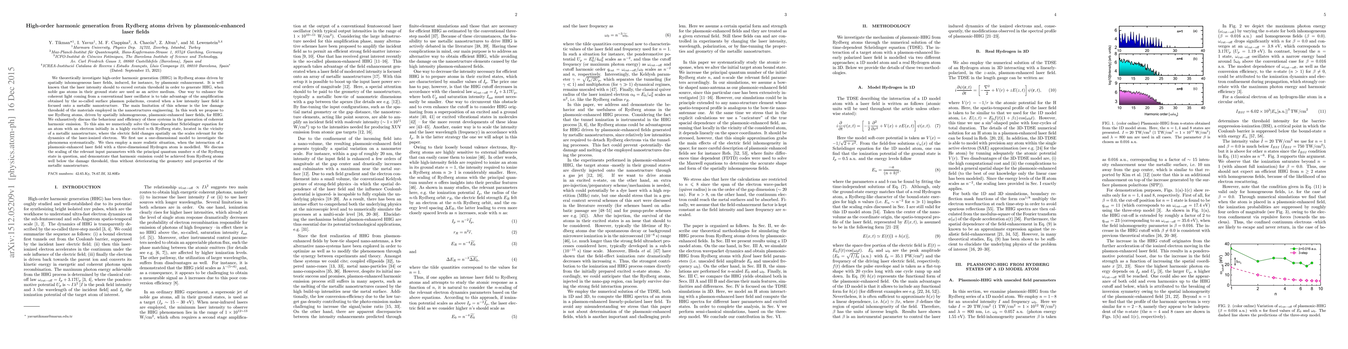 This research explores high-order harmonic generation (HHG) in Rydberg atoms using plasmonic-enhanced laser fields to overcome material damage issues. It demonstrates that Rydberg atoms can efficiently generate coherent harmonic emission at lower intensities, thus preserving the integrity of metallic nanostructures used for plasmonic enhancement.