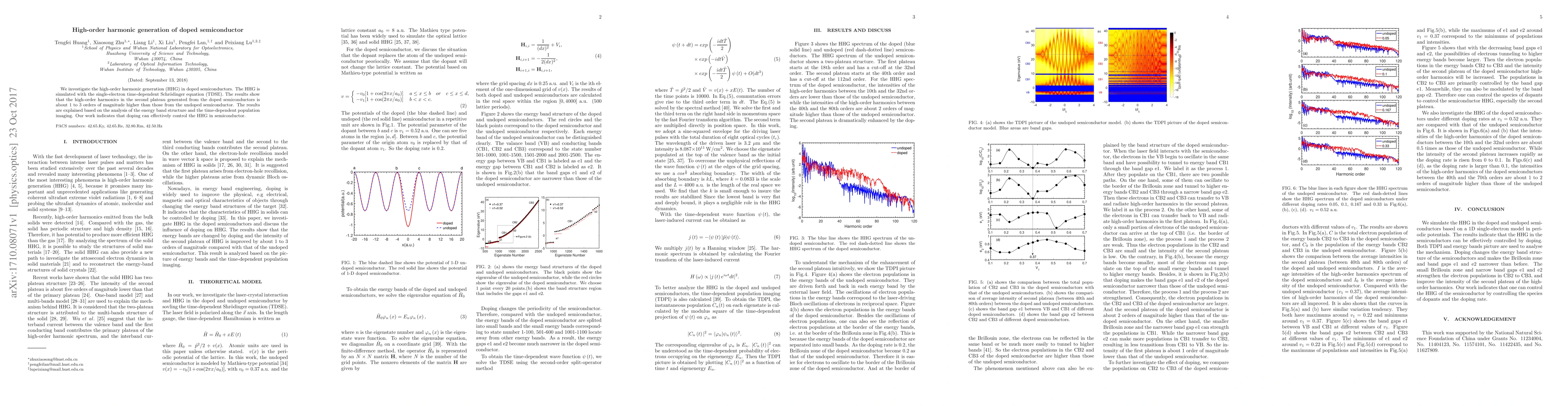 This paper investigates high-order harmonic generation (HHG) in doped semiconductors using the single-electron time-dependent Schrödinger equation. The results reveal that doped semiconductors generate HHG in the second plateau significantly stronger than undoped ones, suggesting that doping can effectively control HHG through changes in the energy band structure and population dynamics.