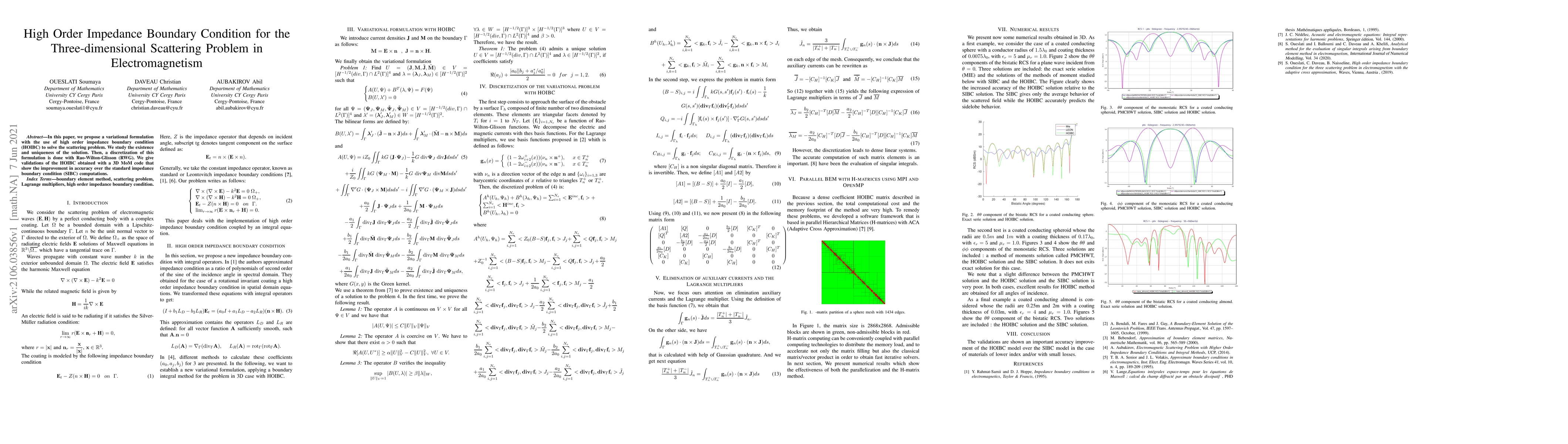 Researchers propose a new method for solving 3D electromagnetic scattering problems using a high-order impedance boundary condition, showing improved accuracy over traditional methods.
