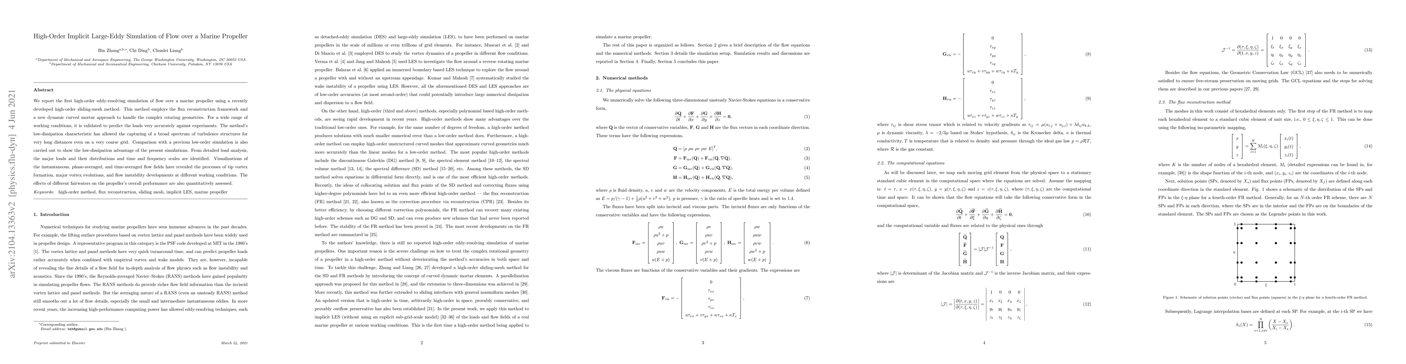 A high-order simulation method successfully predicts marine propeller loads with high accuracy, capturing a broad spectrum of turbulence structures on coarse grids. The study reveals key processes like tip vortex formation and flow instability, providing insights into the propeller's performance under different working conditions.