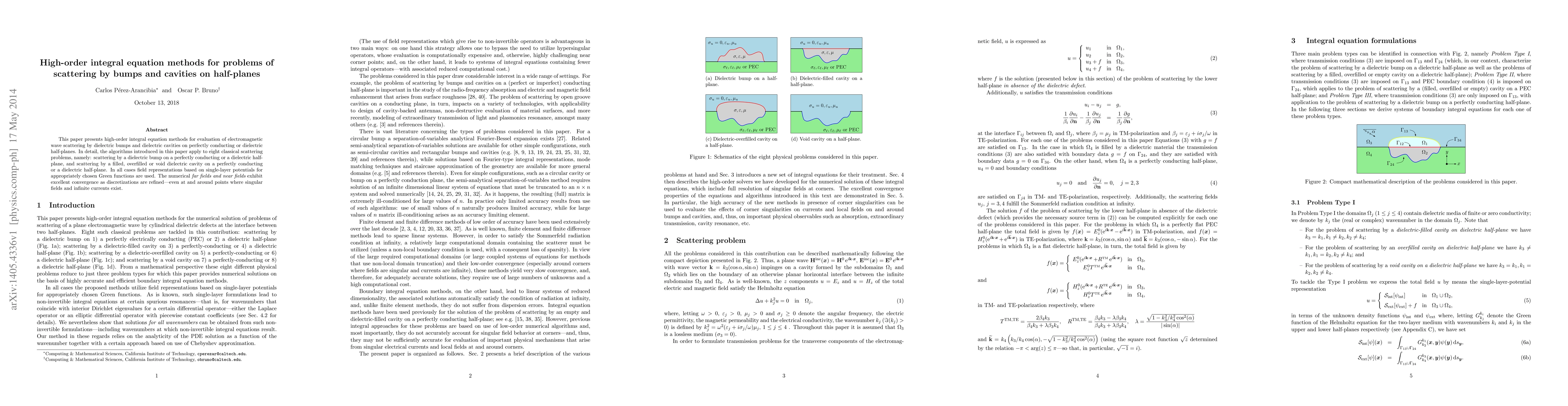Researchers developed high-order integral equation methods for calculating electromagnetic wave scattering around bumps and cavities on half-planes with excellent convergence as discretization is refined.