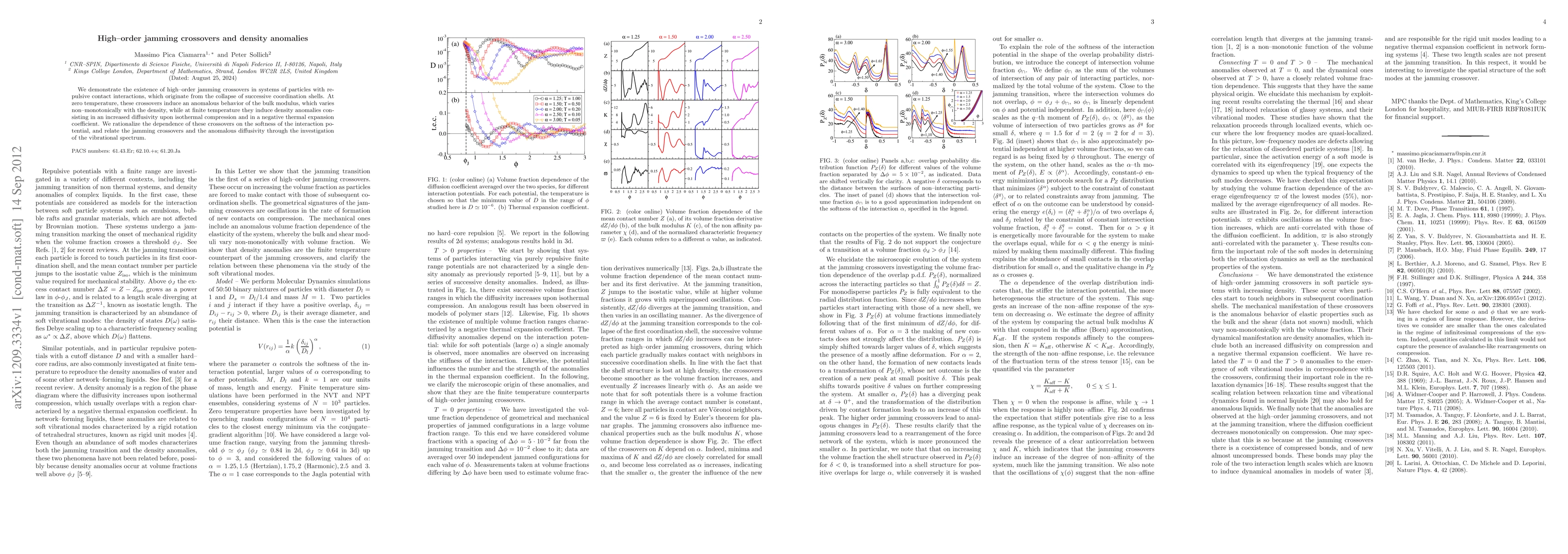 This paper reveals high-order jamming crossovers in particle systems with repulsive interactions, leading to a non-monotonic bulk modulus at zero temperature and density anomalies at finite temperature, including increased diffusivity and negative thermal expansion. The study links these phenomena to the softness of the interaction potential and explores their vibrational spectrum.