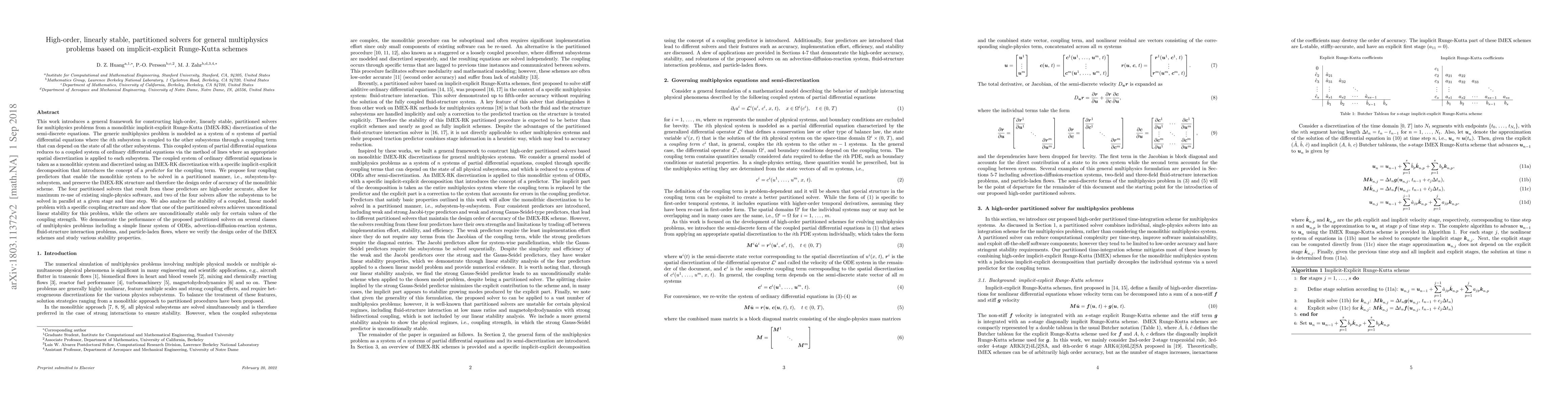 This paper presents a framework for high-order, linearly stable partitioned solvers for multiphysics problems using implicit-explicit Runge-Kutta schemes, proposing four predictors that allow for partitioned, parallelizable solutions while maintaining accuracy and stability. The proposed solvers demonstrate performance across various multiphysics problem types.