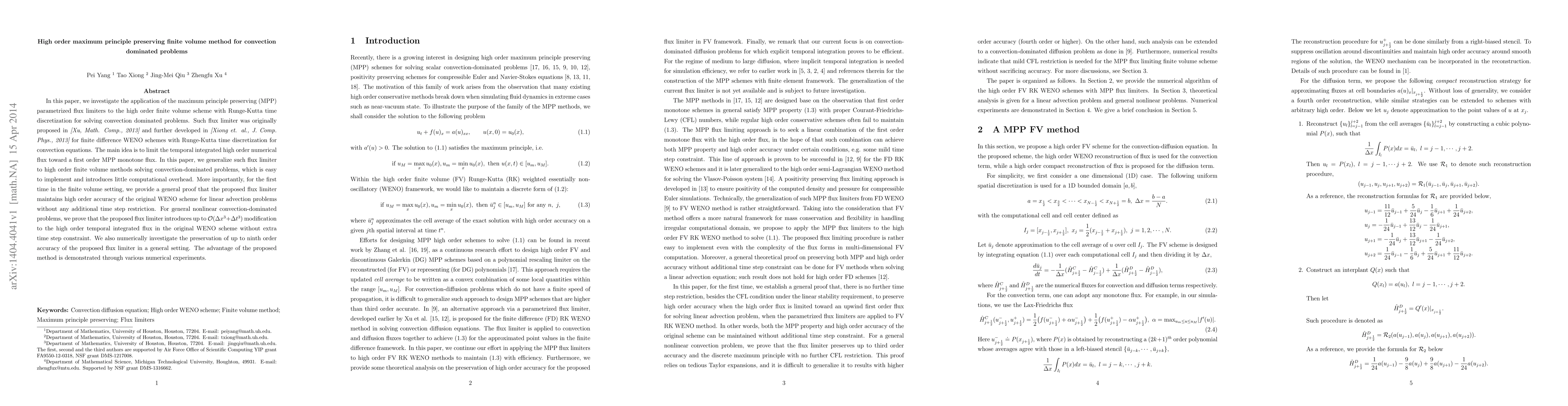 This paper develops a high order maximum principle preserving (MPP) finite volume method for convection-dominated problems using parametrized flux limiters. The method maintains high order accuracy without additional time step restrictions and introduces minimal computational overhead.