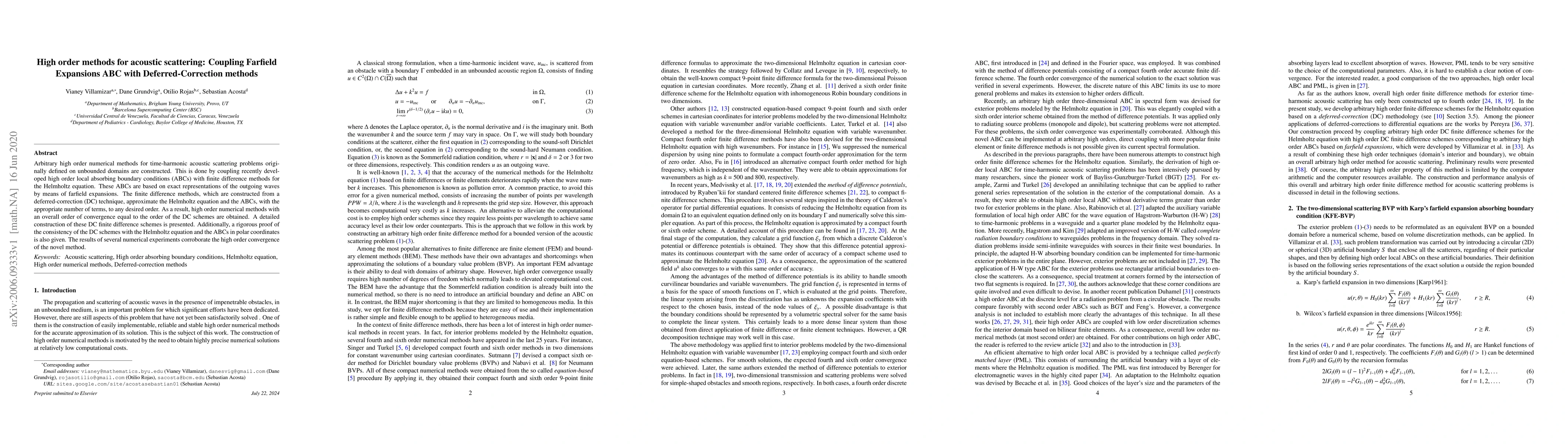 This paper constructs high order numerical methods for acoustic scattering problems using high order local absorbing boundary conditions coupled with deferred-correction finite difference methods for the Helmholtz equation. The proposed method achieves high order convergence and is rigorously proven to be consistent with the governing equations.