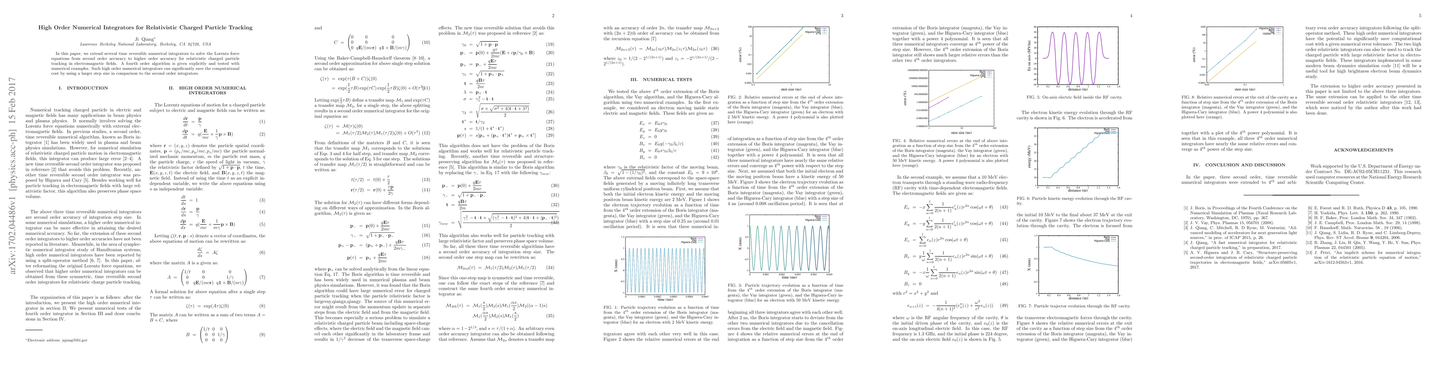 This paper develops high-order numerical integrators for tracking relativistic charged particles in electromagnetic fields, offering a more efficient solution with improved accuracy.