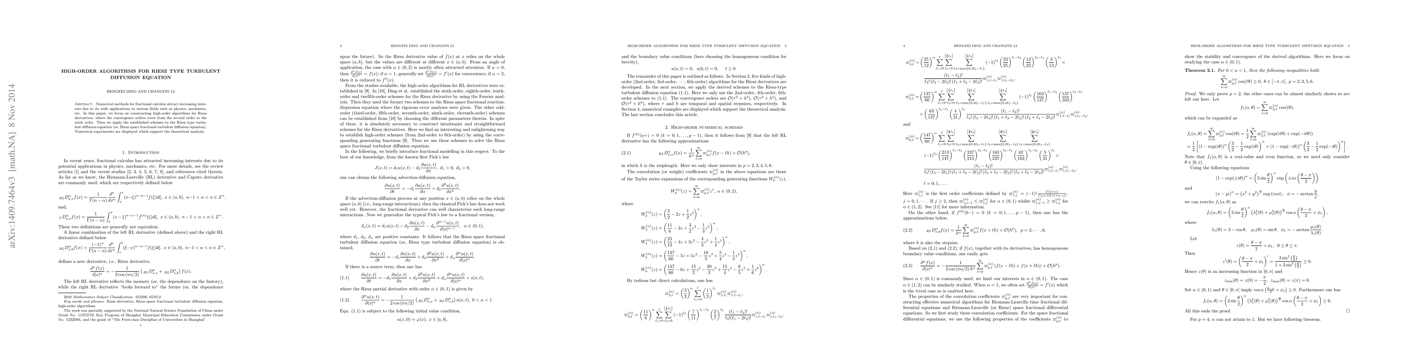This paper develops high-order numerical methods for solving the Riesz space fractional turbulent diffusion equation, achieving convergence orders from second to sixth order. The proposed algorithms are validated through numerical experiments that support the theoretical analysis.