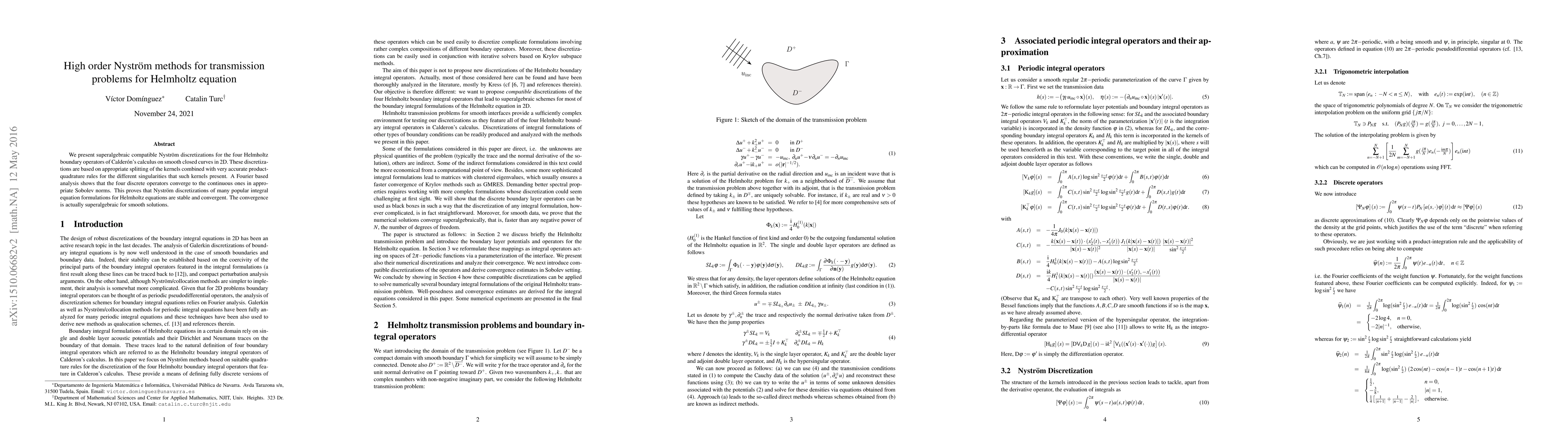 This paper introduces superalgebraic Nyström discretizations for the four Helmholtz boundary operators in Calderón's calculus, demonstrating their stability and convergence through Fourier analysis and product-quadrature rules. The method proves superalgebraic convergence for smooth solutions to Helmholtz equations.