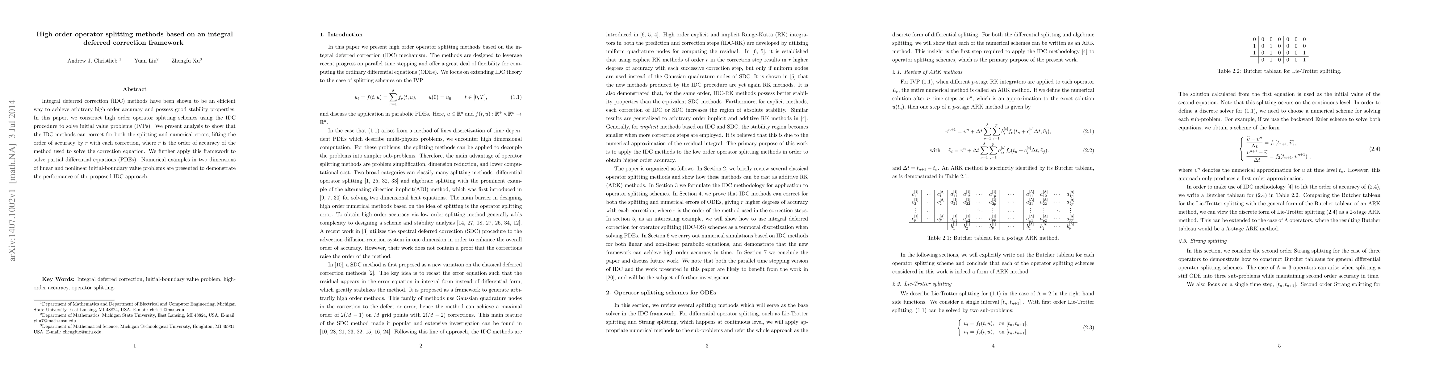 This paper constructs high order operator splitting schemes using integral deferred correction (IDC) methods to solve initial value problems (IVPs) and partial differential equations (PDEs). The IDC framework corrects both splitting and numerical errors, enhancing accuracy by the order of the correction method used.