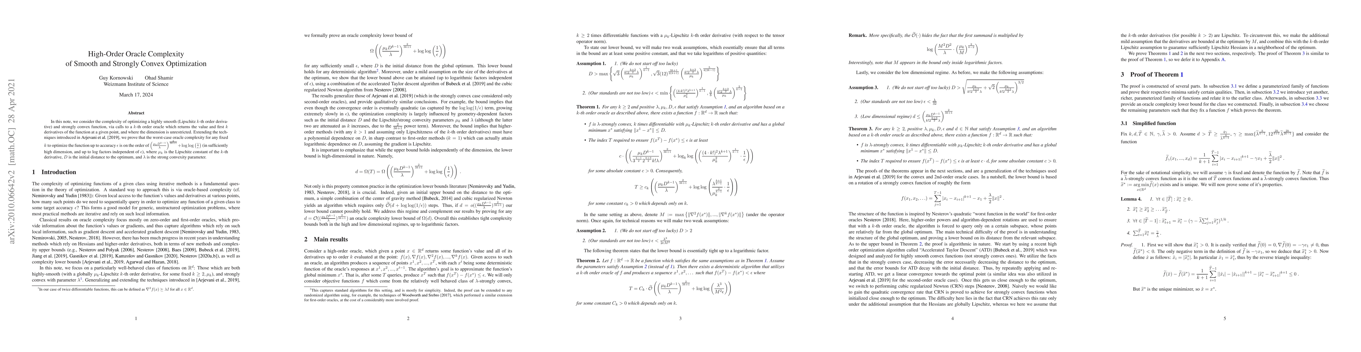 Researchers proved that optimizing smooth and strongly convex functions using a k-th order oracle is less computationally intensive than previously thought, with an optimal complexity of O((φ_k D^{k-1})^{rac{2}{3k+1}} + ιλ(π(1/ϩ)))