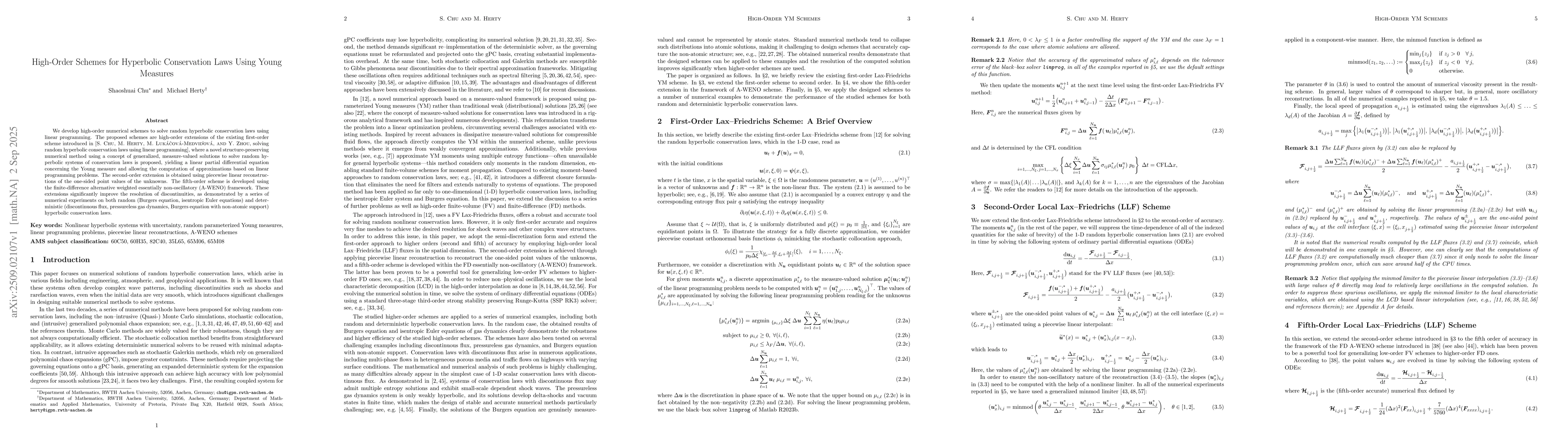 We develop high-order numerical schemes to solve random hyperbolic conservation laws using linear programming. The proposed schemes are high-order extensions of the existing first-order scheme introduced in [{\sc S. Chu, M. Herty, M. Luk\'a\v{c}ov\'a-Medvi{\softd}ov\'a, and Y. Zhou}, solving random hyperbolic conservation laws using linear programming], where a novel structure-preserving numerical method using a concept of generalized, measure-valued solutions to solve random hyperbolic systems of conservation laws is proposed, yielding a linear partial differential equation concerning the Young measure and allowing the computation of approximations based on linear programming problems. The second-order extension is obtained using piecewise linear reconstructions of the one-sided point values of the unknowns. The fifth-order scheme is developed using the finite-difference alternative weighted essentially non-oscillatory (A-WENO) framework. These extensions significantly improve the resolution of discontinuities, as demonstrated by a series of numerical experiments on both random (Burgers equation, isentropic Euler equations) and deterministic (discontinuous flux, pressureless gas dynamics, Burgers equation with non-atomic support) hyperbolic conservation laws.