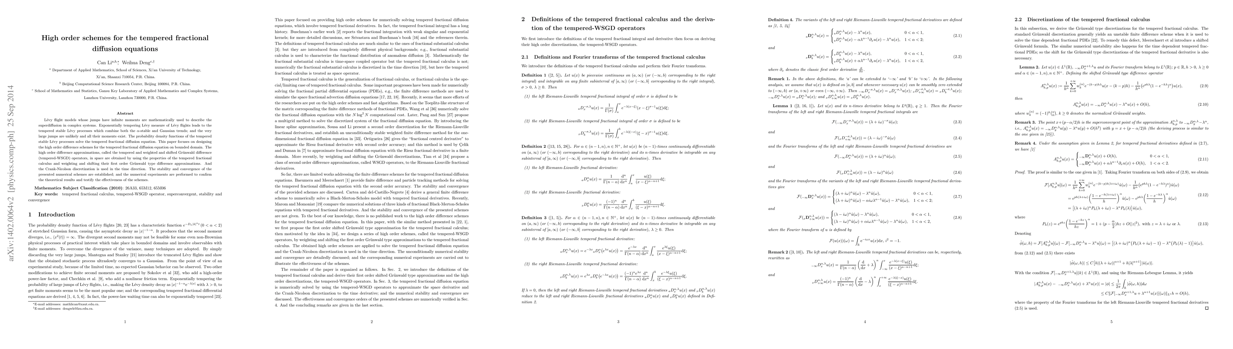 This paper develops high-order numerical schemes for solving the tempered fractional diffusion equation, utilizing tempered-WSGD operators for spatial discretization and the Crank-Nicolson method for time discretization. Theoretical stability and convergence are proven, and numerical experiments validate the effectiveness of the proposed schemes.