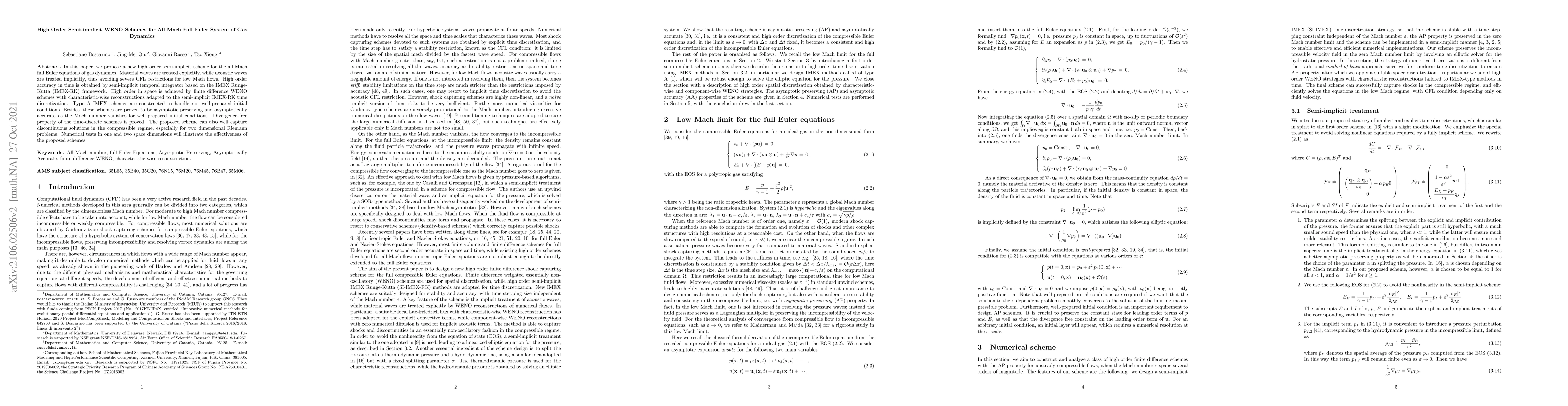 This paper introduces a high-order semi-implicit WENO scheme for solving the full Euler equations of gas dynamics across all Mach numbers. The method treats acoustic waves implicitly and material waves explicitly to avoid CFL restrictions, achieving high-order accuracy in both time and space.