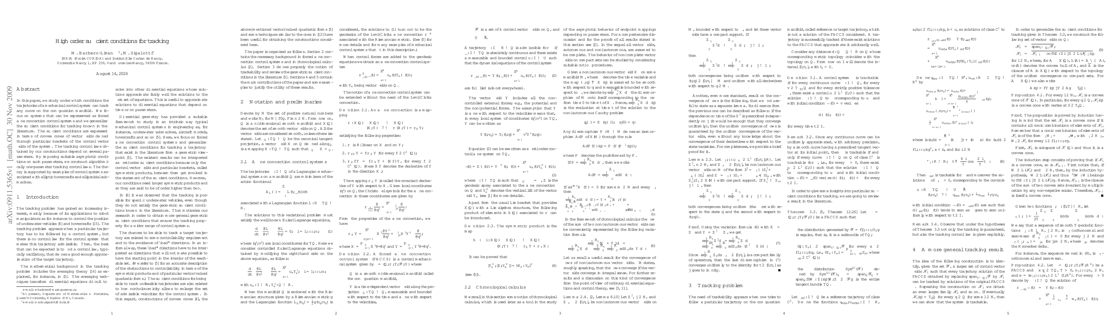 This paper develops high-order sufficient conditions for mechanical control systems to track any curve on their configuration manifold, focusing on forced affine connection control systems. It generalizes existing tracking conditions using convex cones and particular vector field brackets, and constructs one-parameter tracking control laws under suitable asymptotic conditions. Examples include control systems for elliptic hovercrafts and ellipsoidal submarines.