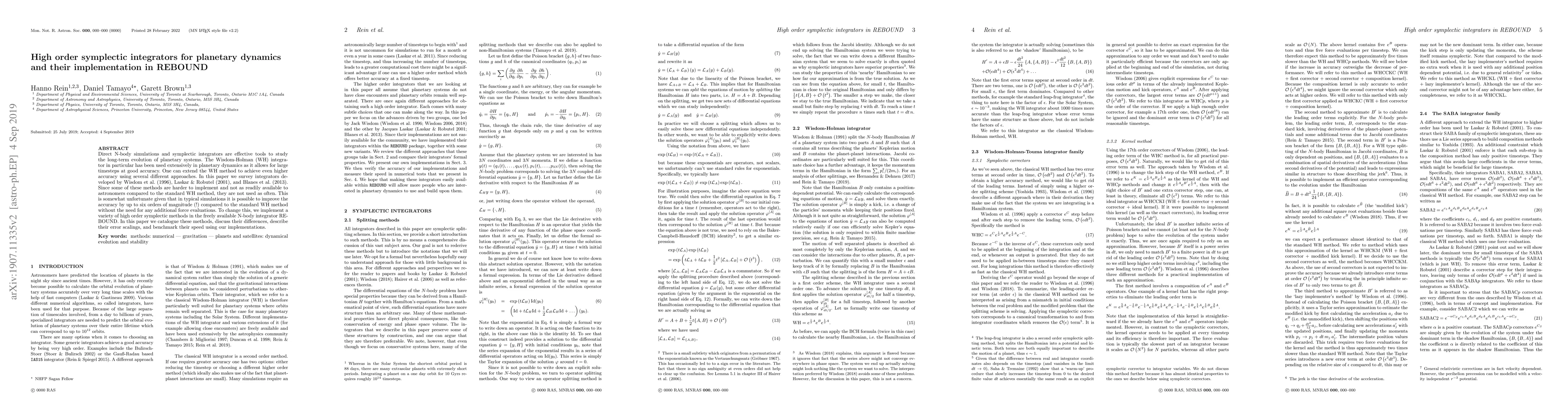 Direct N-body simulations and symplectic integrators are effective tools to study the long-term evolution of planetary systems. The Wisdom-Holman (WH) integrator in particular has been used extensively in planetary dynamics as it allows for large timesteps at good accuracy. One can extend the WH method to achieve even higher accuracy using several different approaches. In this paper we survey integrators developed by Wisdom et al. (1996), Laskar & Robutel (2001, and Blanes et al. (2013). Since some of these methods are harder to implement and not as readily available to astronomers compared to the standard WH method, they are not used as often. This is somewhat unfortunate given that in typical simulations it is possible to improve the accuracy by up to six orders of magnitude (!) compared to the standard WH method without the need for any additional force evaluations. To change this, we implement a variety of high order symplectic methods in the freely available N-body integrator REBOUND. In this paper we catalogue these methods, discuss their differences, describe their error scalings, and benchmark their speed using our implementations.
