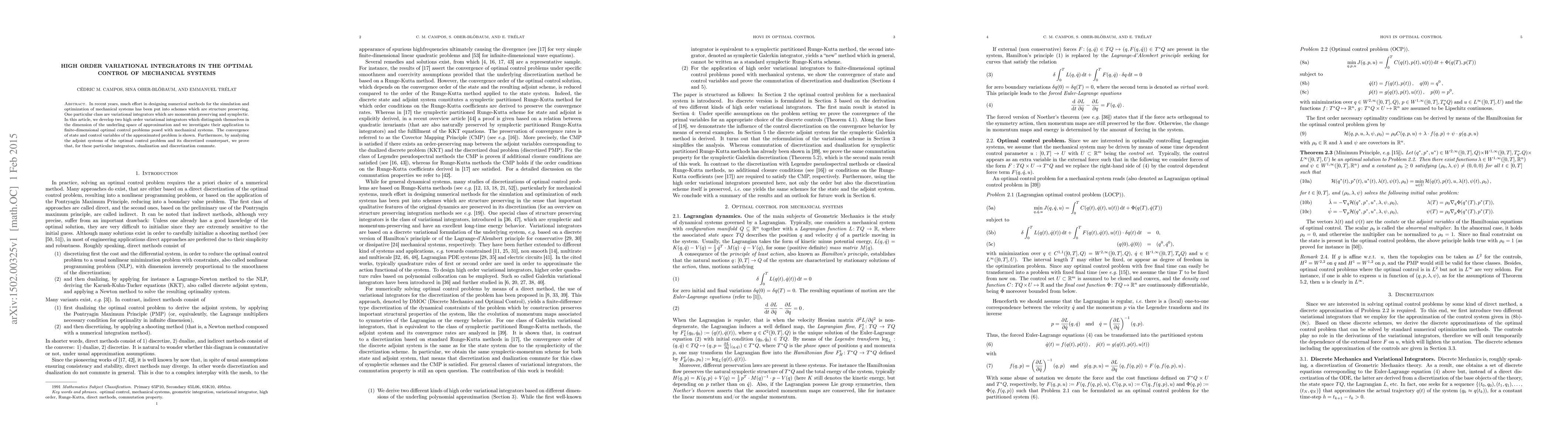This article develops two high-order variational integrators for simulating and optimizing mechanical systems, proving their convergence and demonstrating that they allow for commuting dualization and discretization in optimal control problems. The focus is on structure-preserving methods that are both momentum preserving and symplectic.