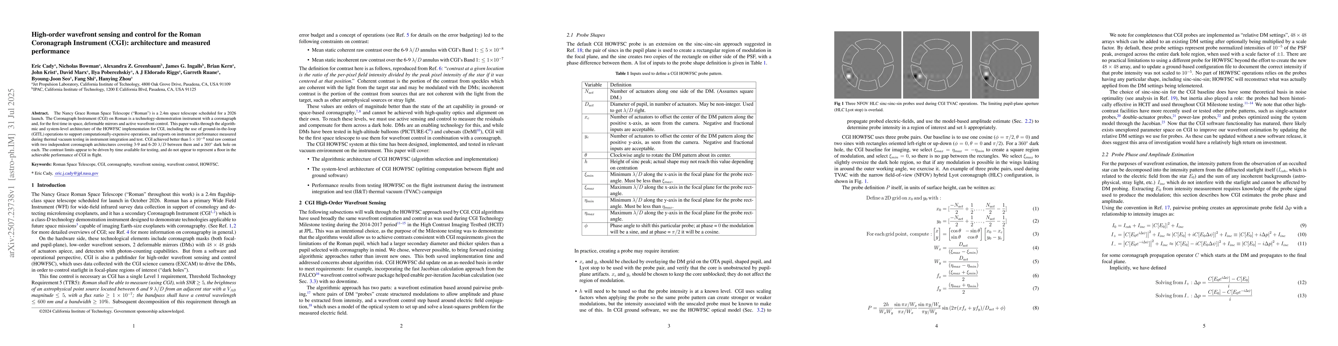 The Nancy Grace Roman Space Telescope (``Roman'') is a 2.4m space telescope scheduled for a 2026 launch. The Coronagraph Instrument (CGI) on Roman is a technology-demonstration instrument with a coronagraph and, for the first time in space, deformable mirrors and active wavefront control. This paper walks through the algorithmic and system-level architecture of the HOWFSC implementation for CGI, including the use of ground-in-the-loop (GITL) operations to support computationally-expensive operations, and reports on instrument performance measured during thermal vacuum testing in instrument integration and test. CGI achieved better than $5\times10^{-8}$ total raw contrast with two independent coronagraph architectures covering 3-9 and 6-20 $\lambda/D$ between them and a $360^{\circ}$ dark hole on each. The contrast limits appear to be driven by time available for testing, and do not appear to represent a floor in the achievable performance of CGI in flight.