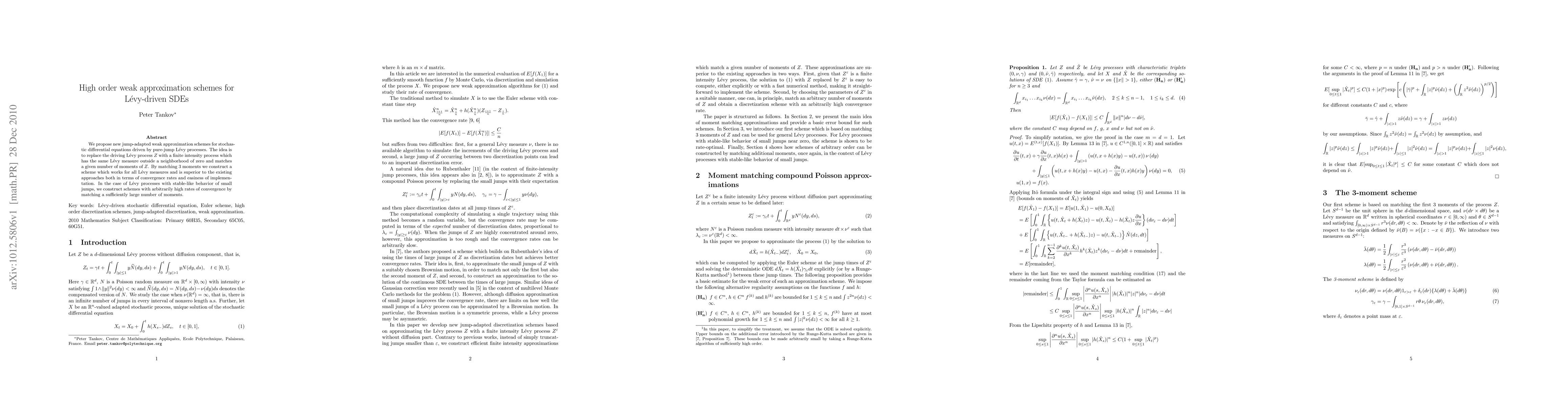 We propose new jump-adapted weak approximation schemes for stochastic differential equations driven by pure-jump L\'evy processes. The idea is to replace the driving L\'evy process $Z$ with a finite intensity process which has the same L\'evy measure outside a neighborhood of zero and matches a given number of moments of $Z$. By matching 3 moments we construct a scheme which works for all L\'evy measures and is superior to the existing approaches both in terms of convergence rates and easiness of implementation. In the case of L\'evy processes with stable-like behavior of small jumps, we construct schemes with arbitrarily high rates of convergence by matching a sufficiently large number of moments.